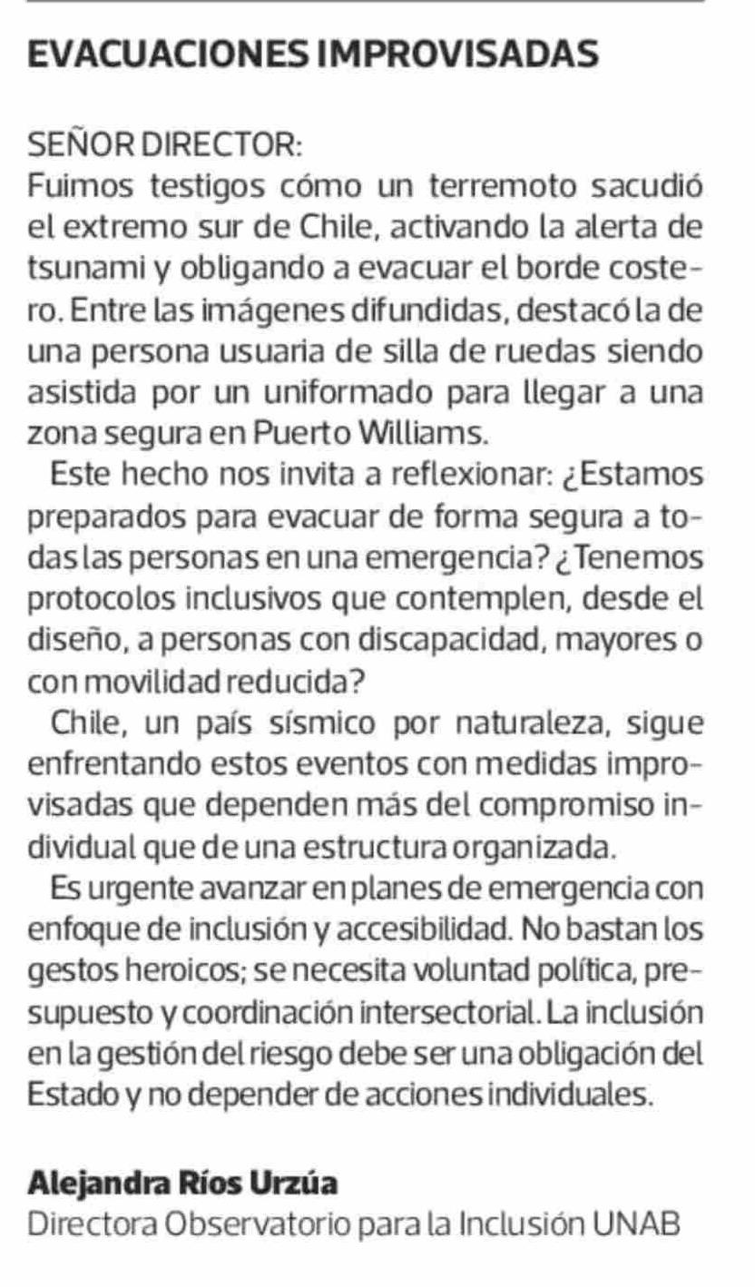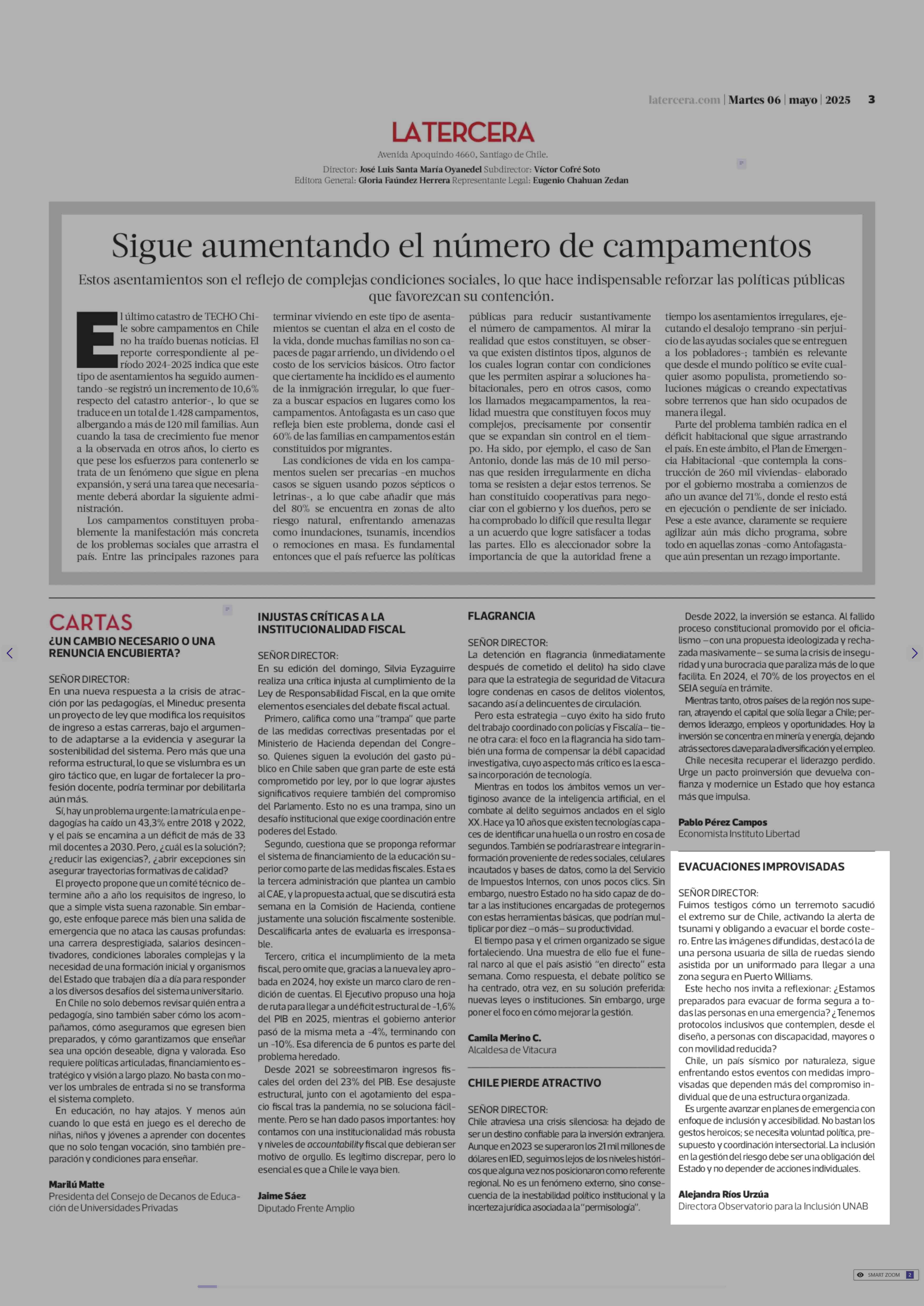 CARTAS: EVACUACIONES IMPROVISADAS 06-05-2025 La Tercera |