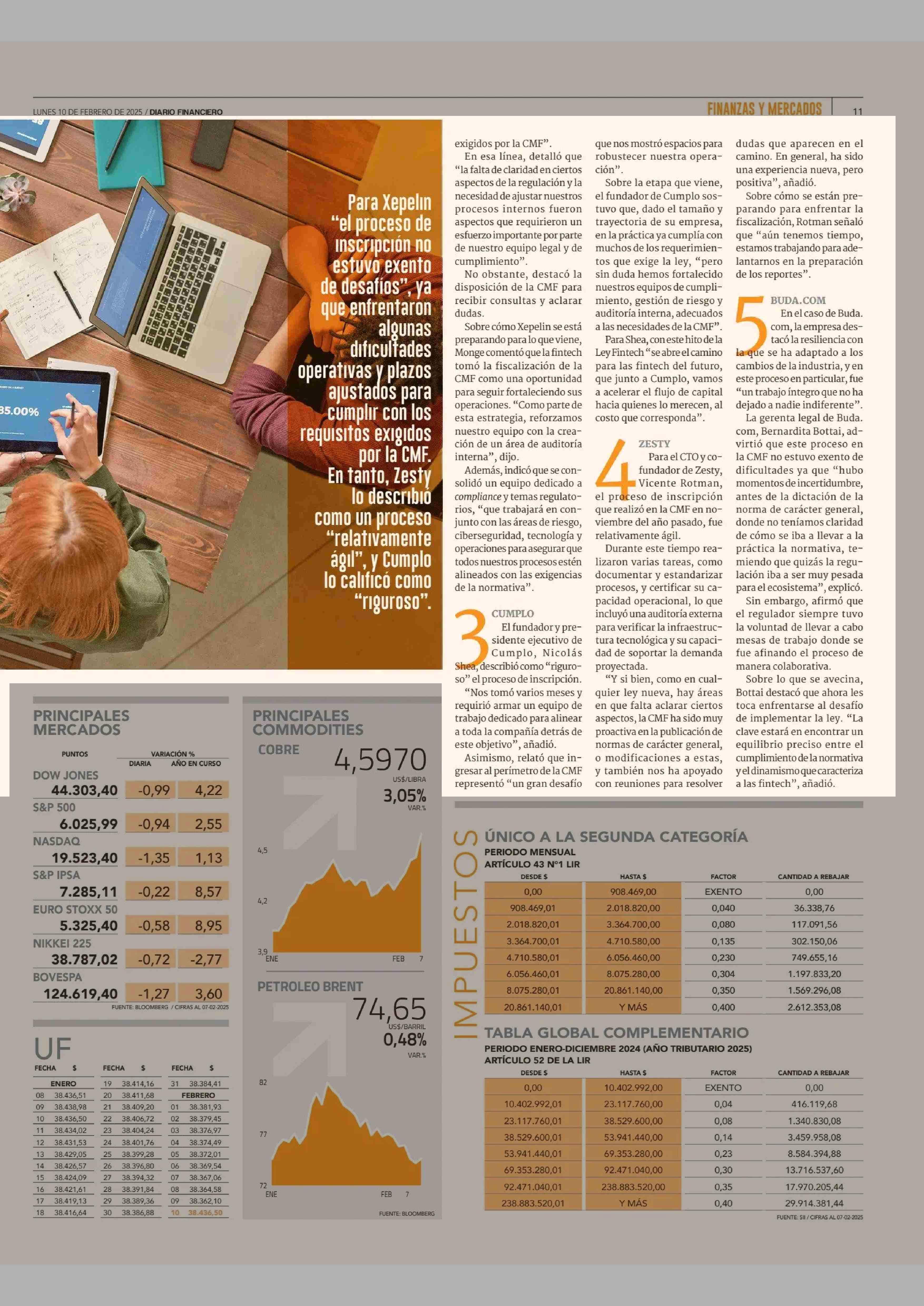Así fue el proceso de: inscripción en la CMF en voz de cinco fintech 10-02-2025 Diario Financiero |
