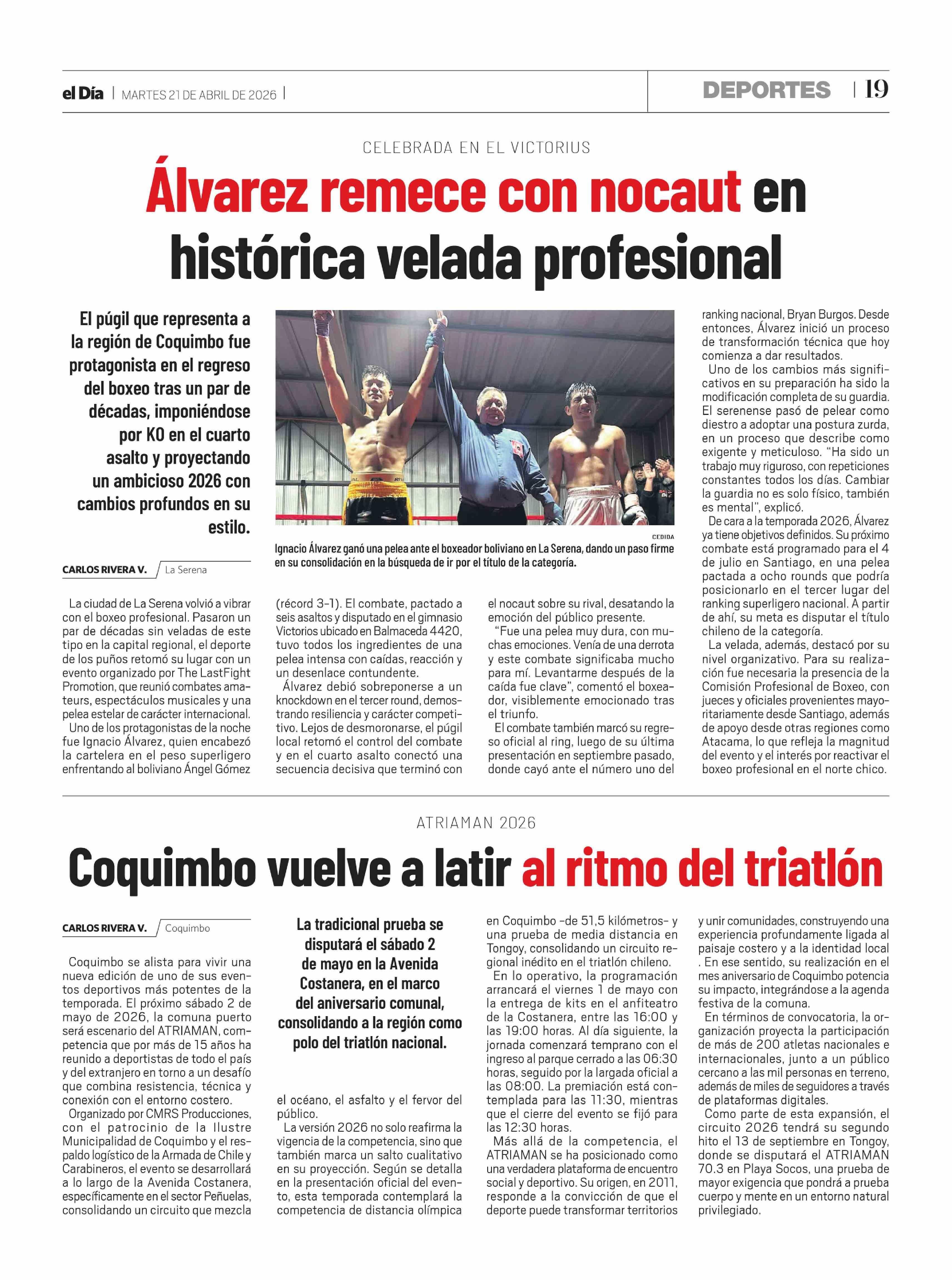 Coquimbo vuelve a latir al ritmo del triatlón 21-04-2026 El Día |