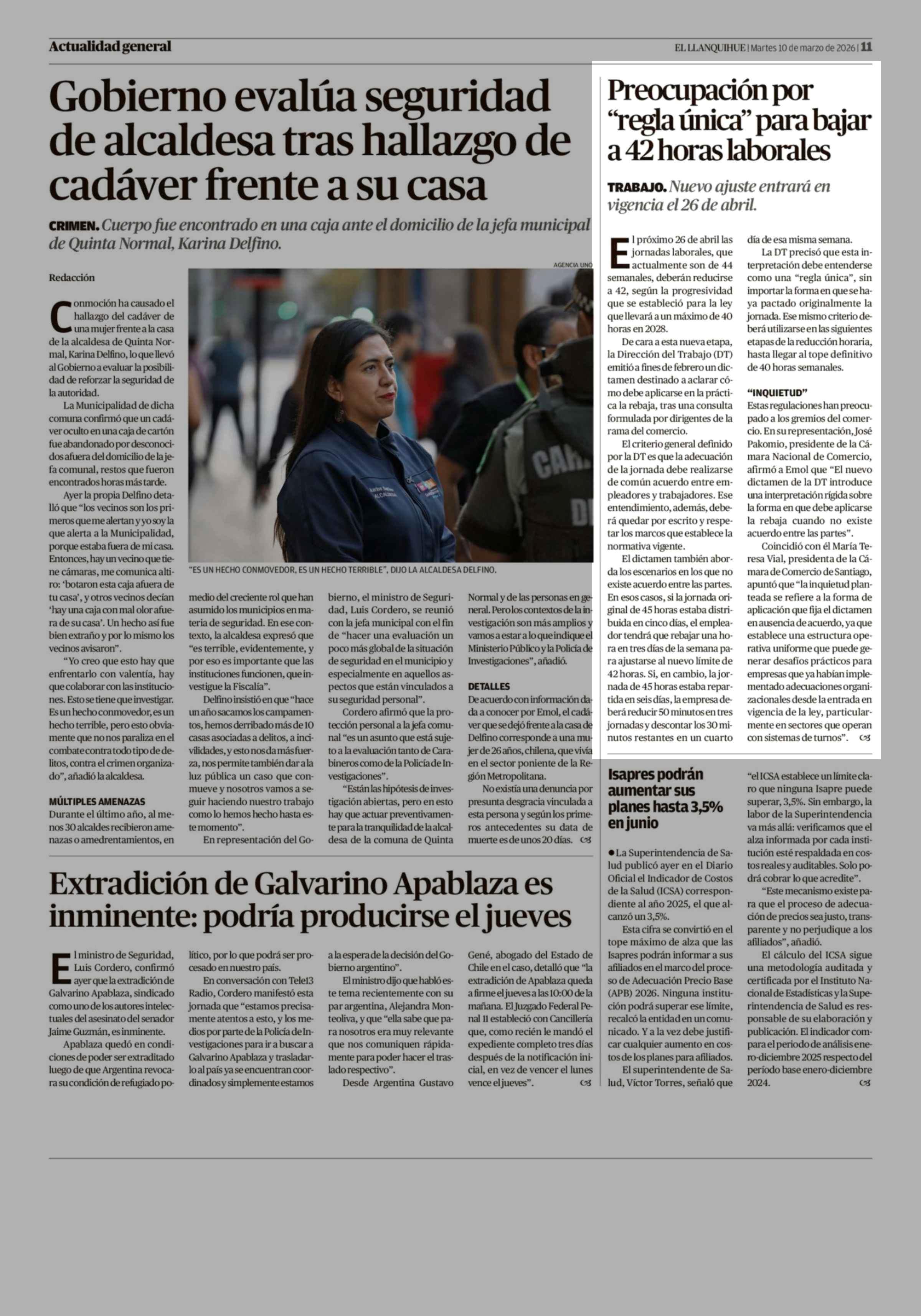 Preocupación por "regla única" para bajar a 42 horas laborales 10-03-2026 El Llanquihue |