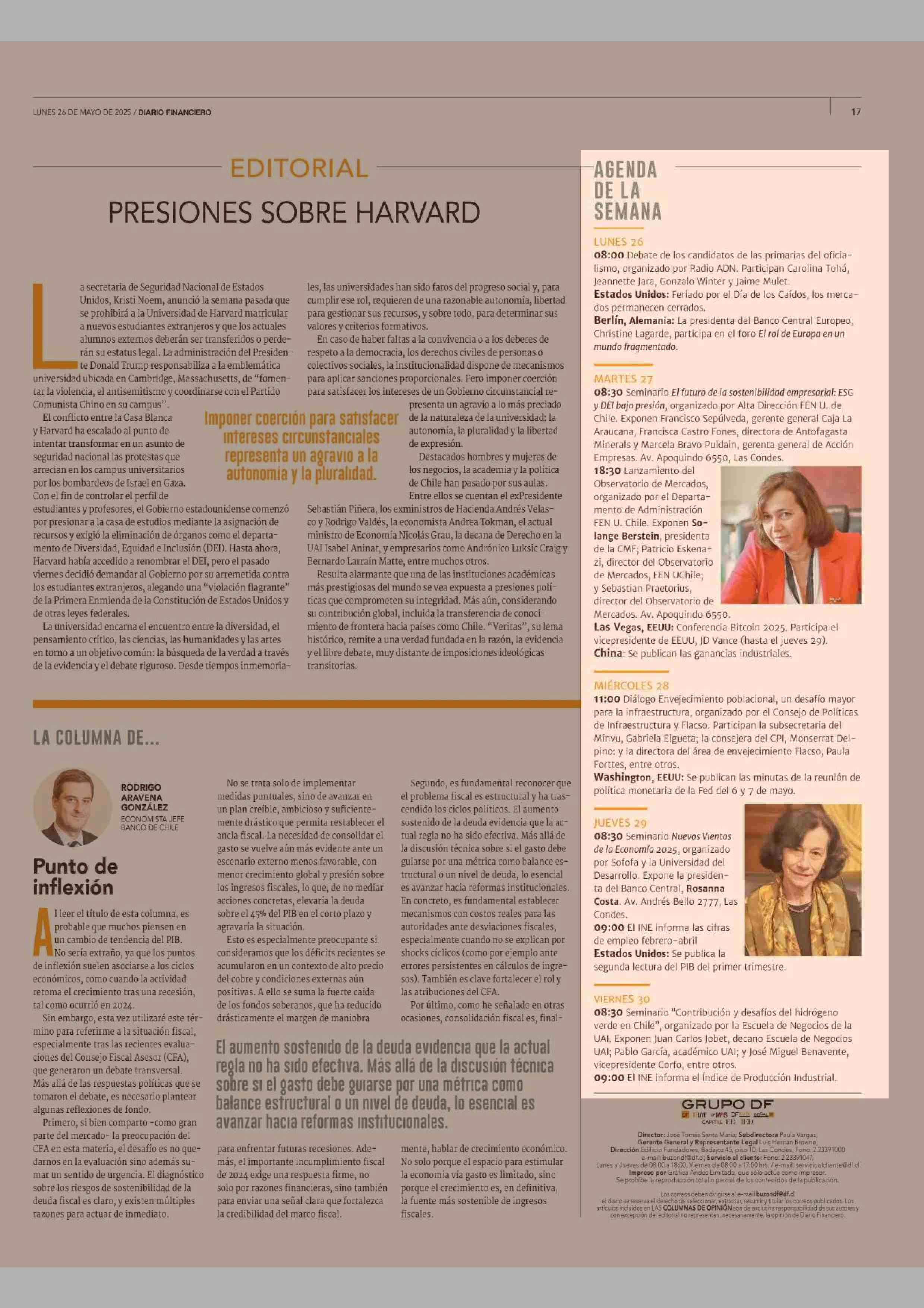 AGENDA DE LA SEMANA 26-05-2025 Diario Financiero |