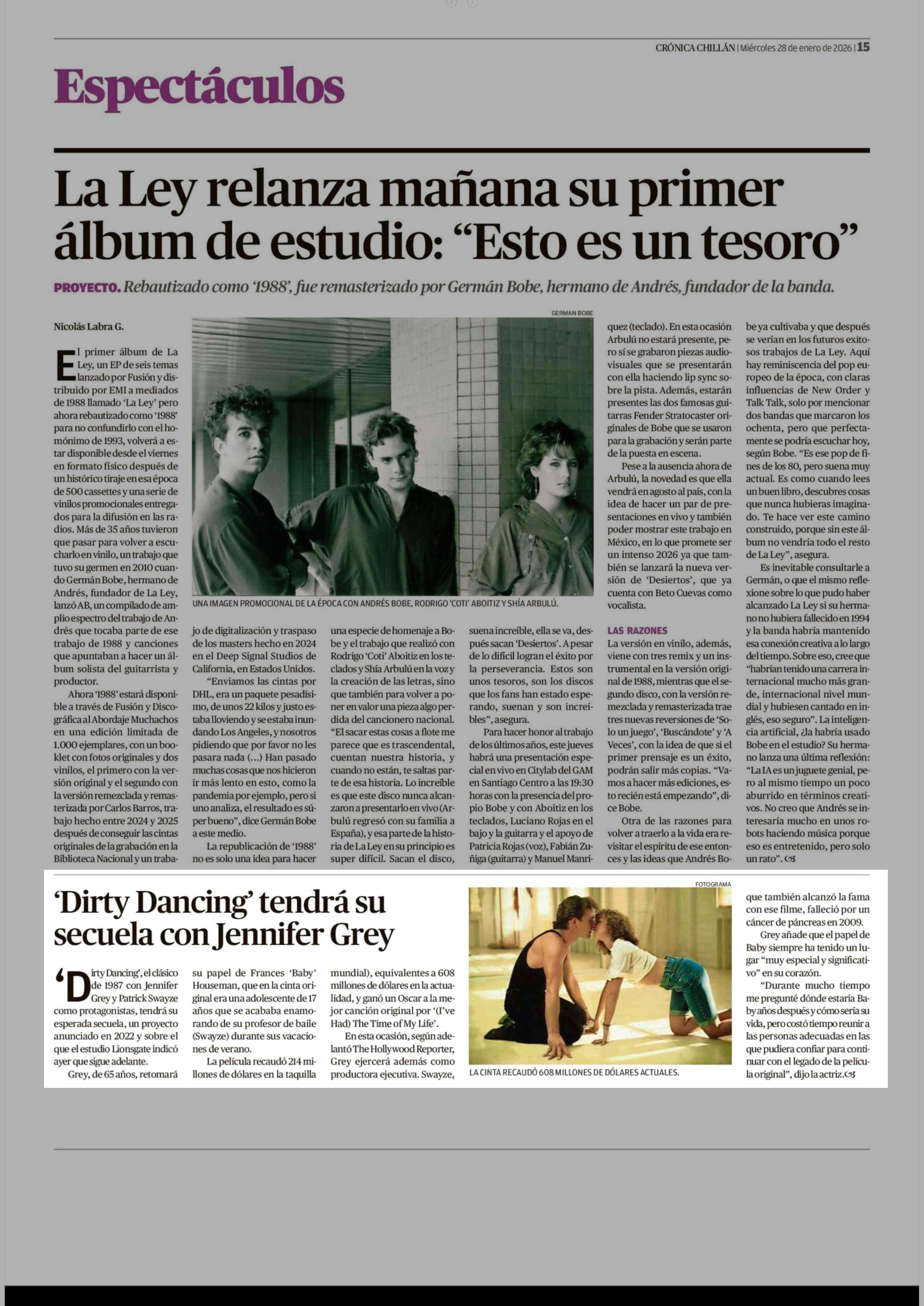 'Dirty Dancing' tendrá su secuela con Jennifer Grey 28-01-2026 Crónica de Chillán |
