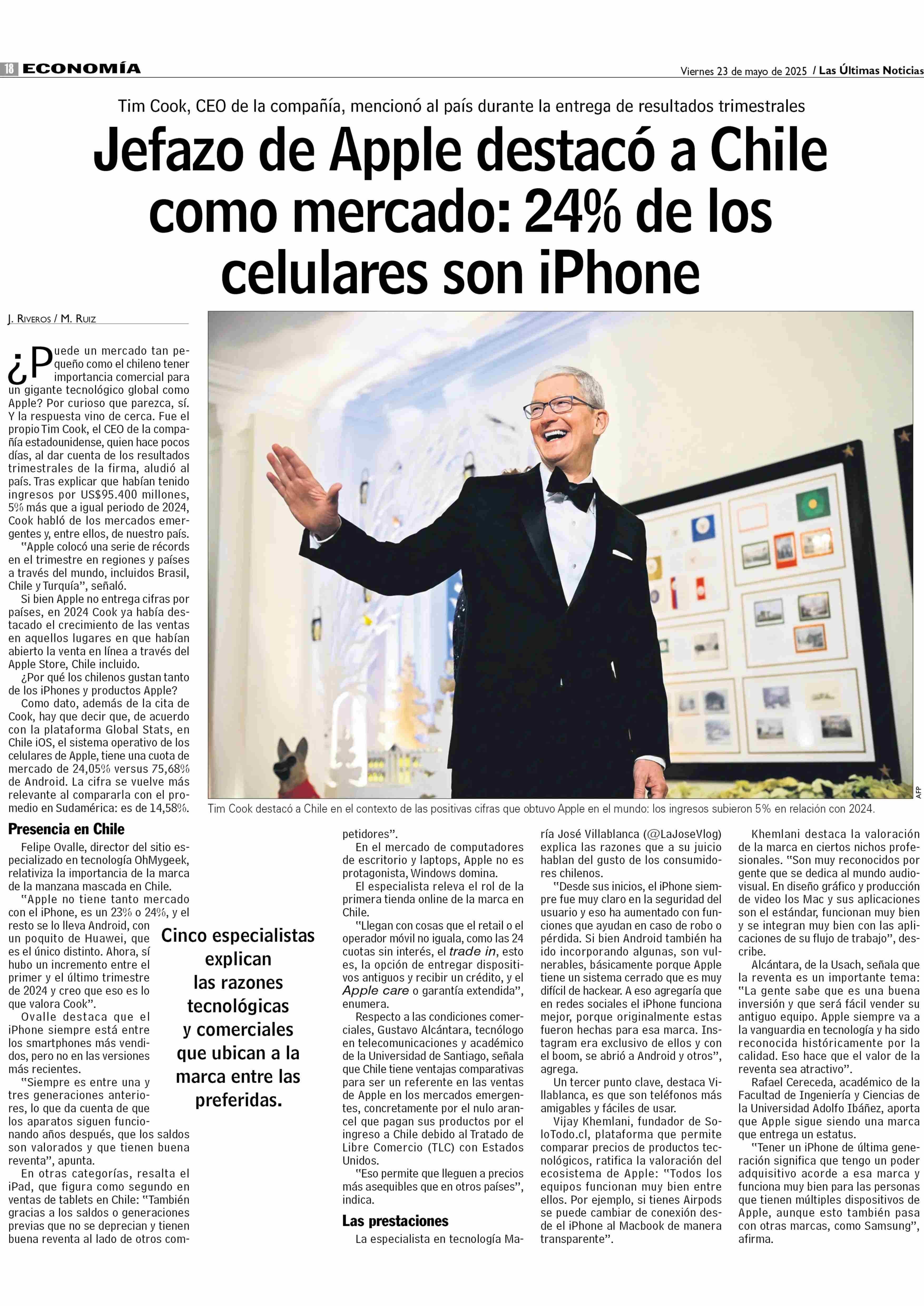 Título: Jefazo de Apple destacó a Chile como mercado: 24% de los celulares son ¡IPhone
