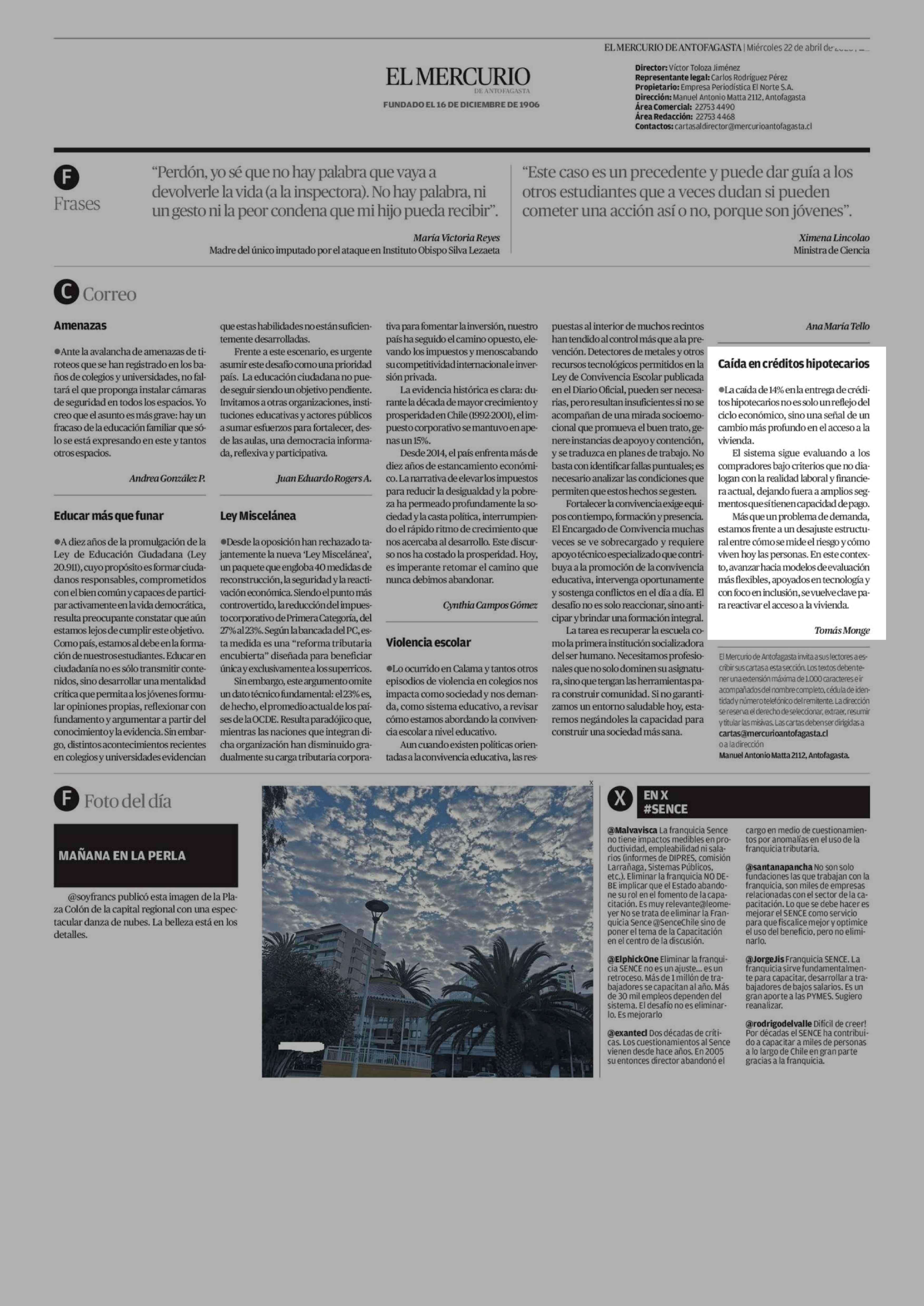 CARTAS: Caída en créditos hipotecarios 22-04-2026 El Mercurio de Antofagasta |