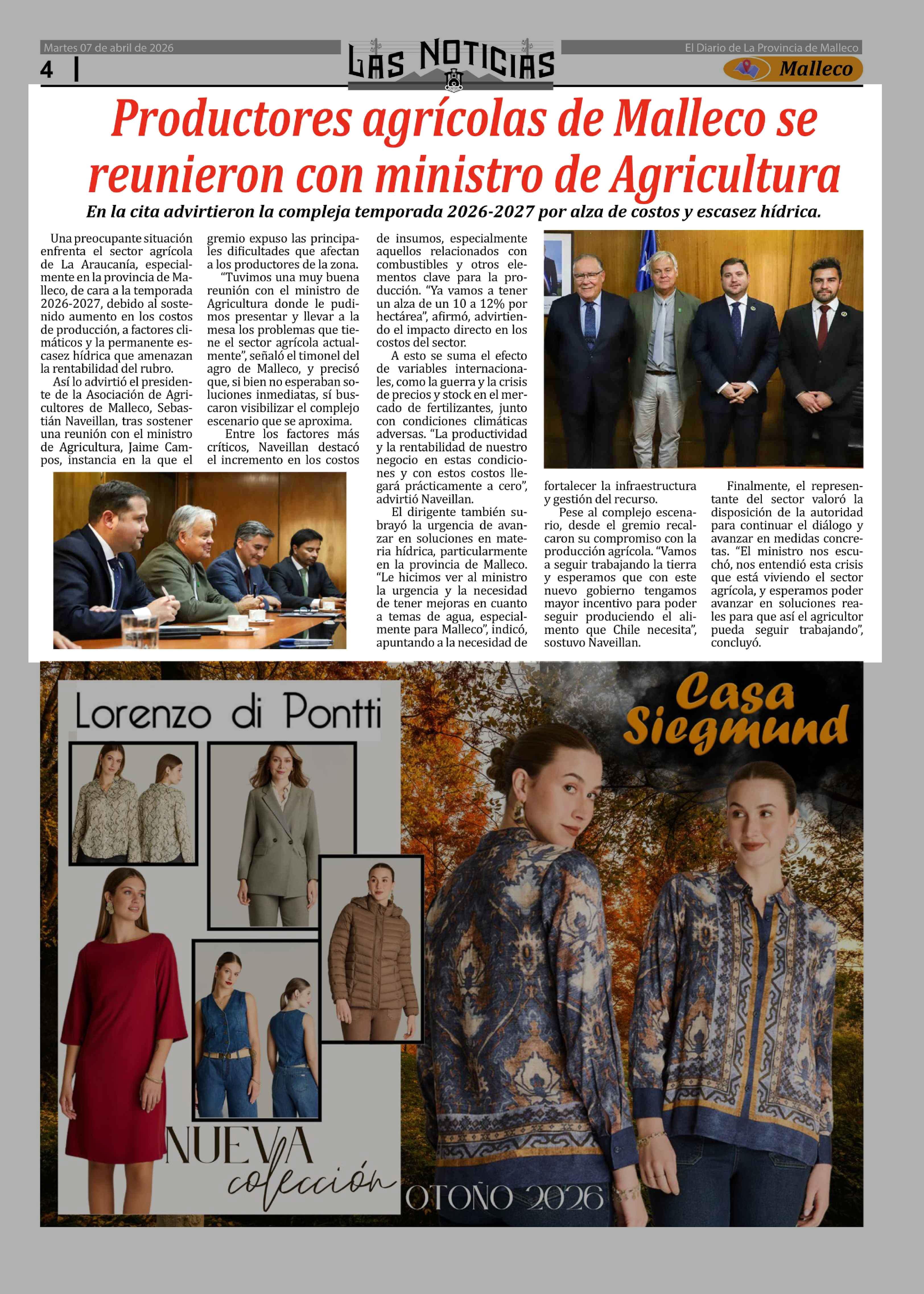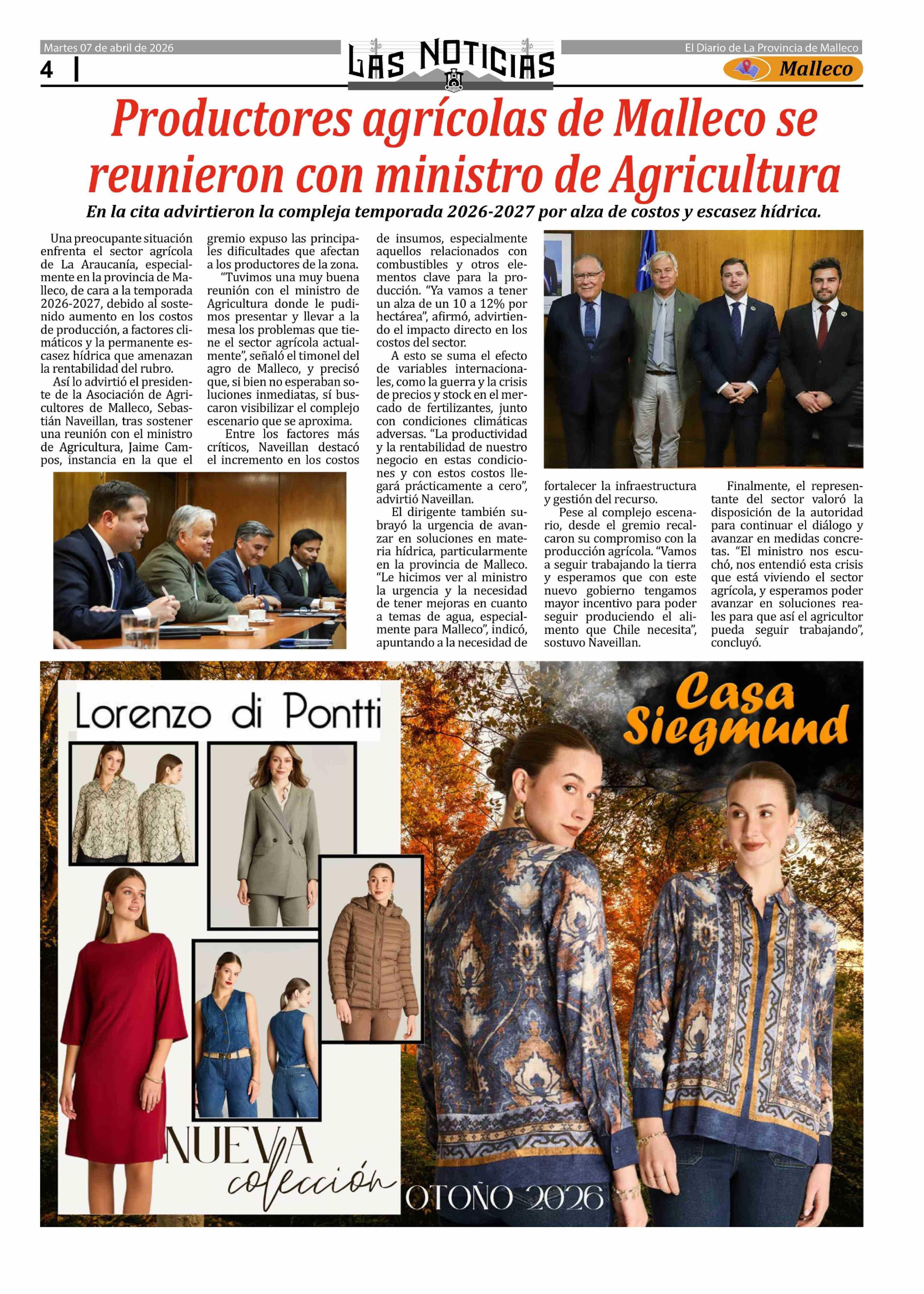 Productores agrícolas de Malleco se reunieron con ministro de Agricultura 07-04-2026 Las Noticias |