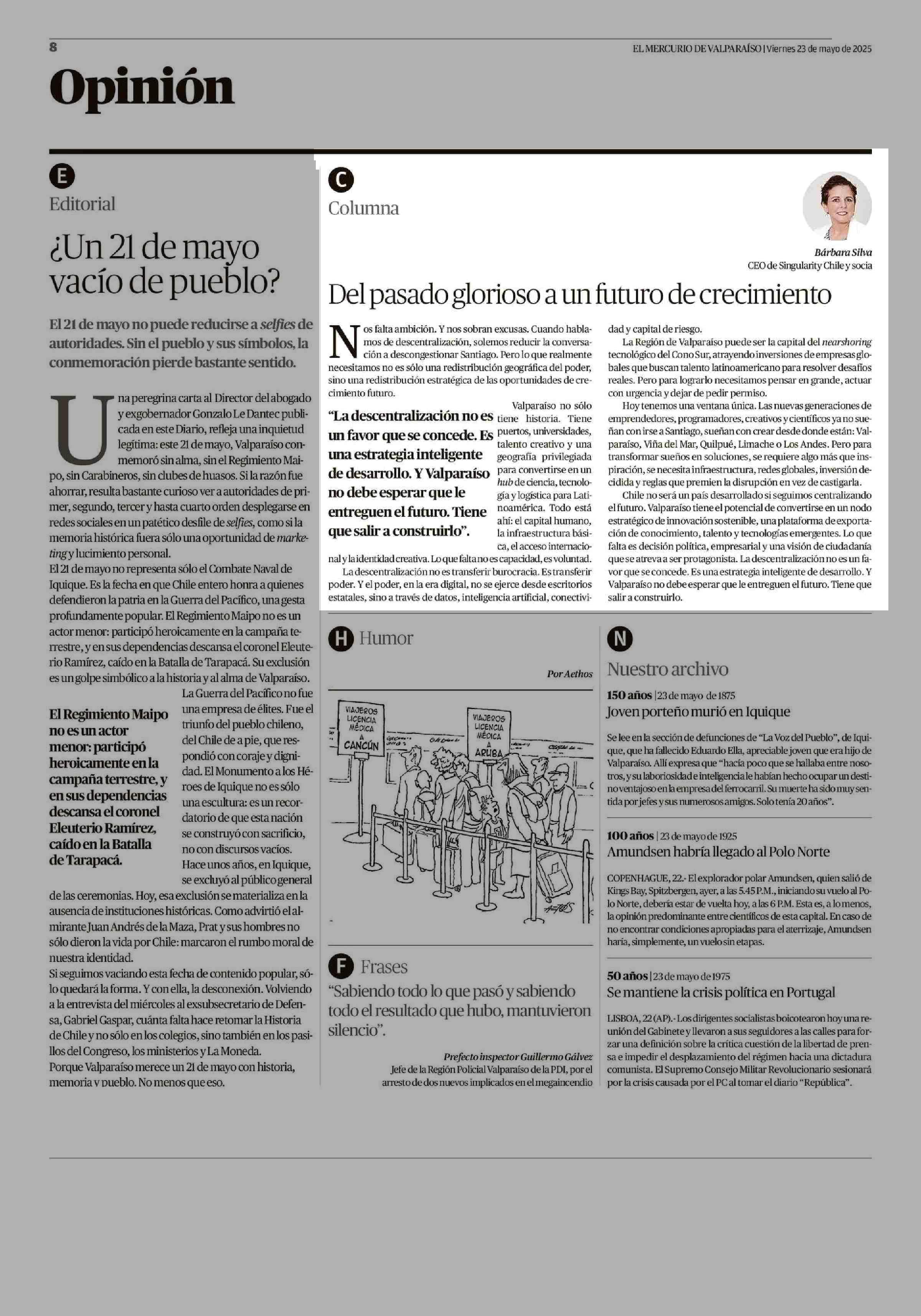 CARTAS: Del pasado glorioso a un futuro de crecimiento 23-05-2025 El Mercurio de Valparaíso |