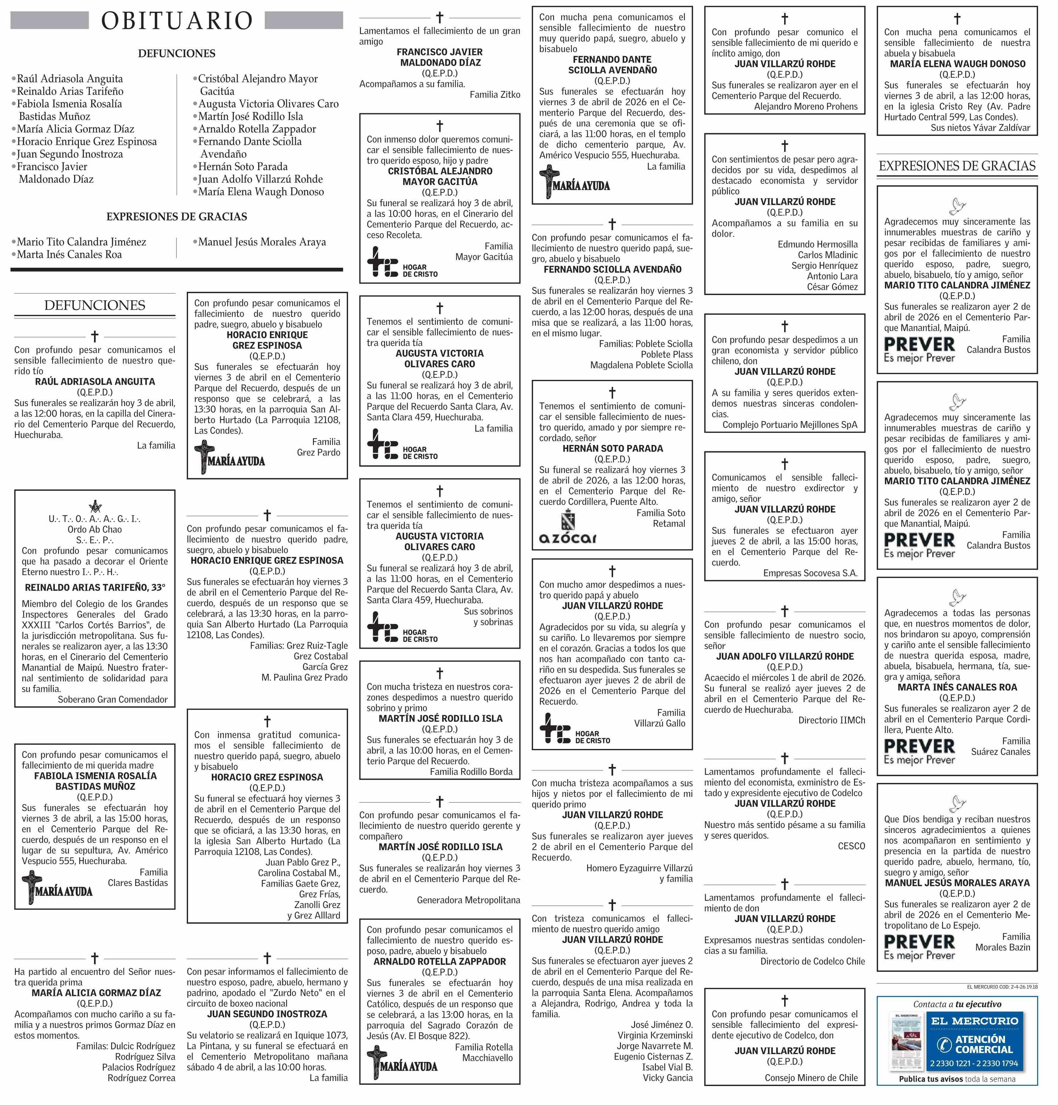 Defunciones 03-04-2026 El Mercurio |