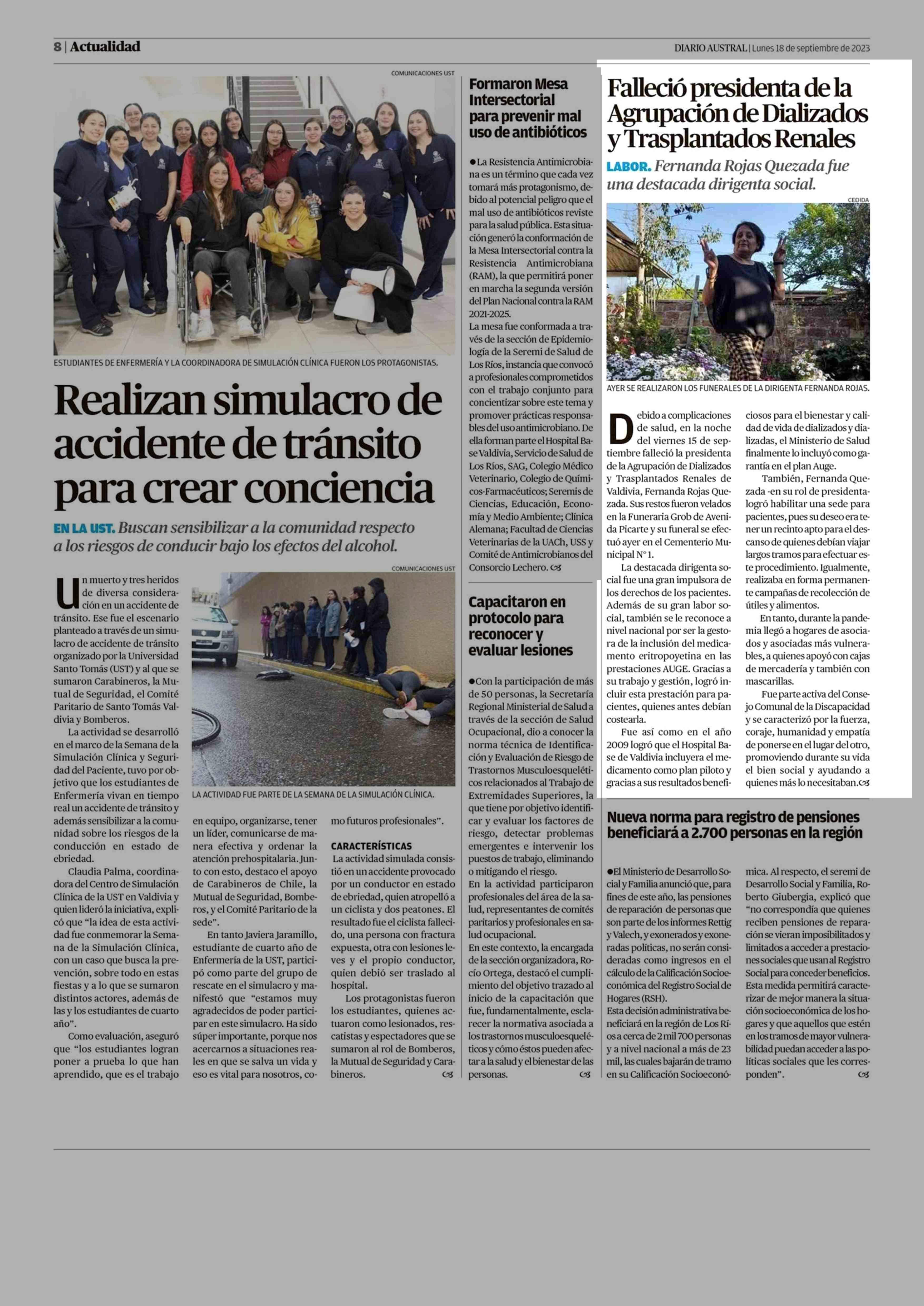 Falleció presidenta de la Agrupación de Dializados y Trasplantados Renales 18-09-2023 Diario Austral Región de Los Ríos |