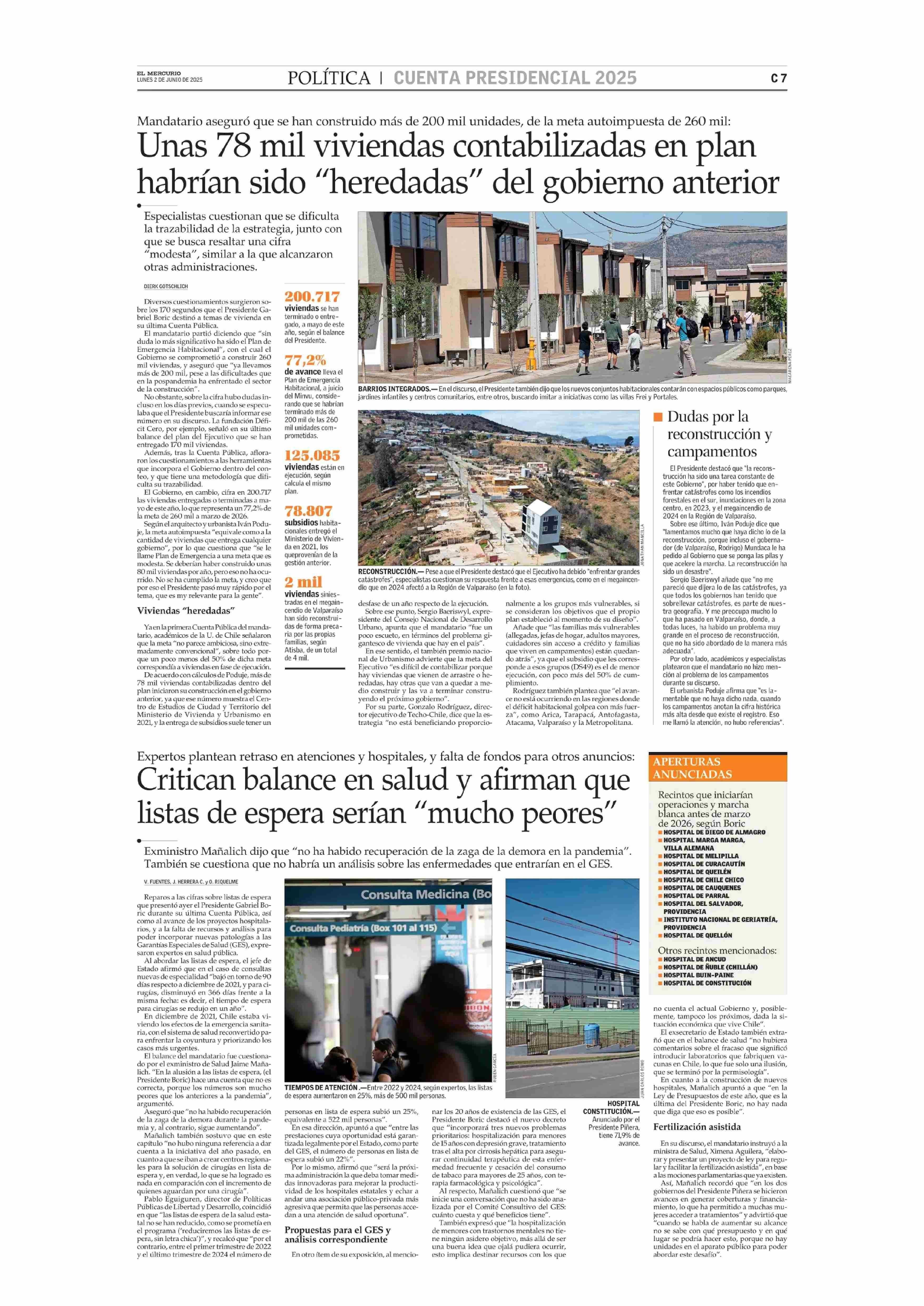 Critican balance en salud y afirman que listas de espera serían “mucho peores” 02-06-2025 El Mercurio |