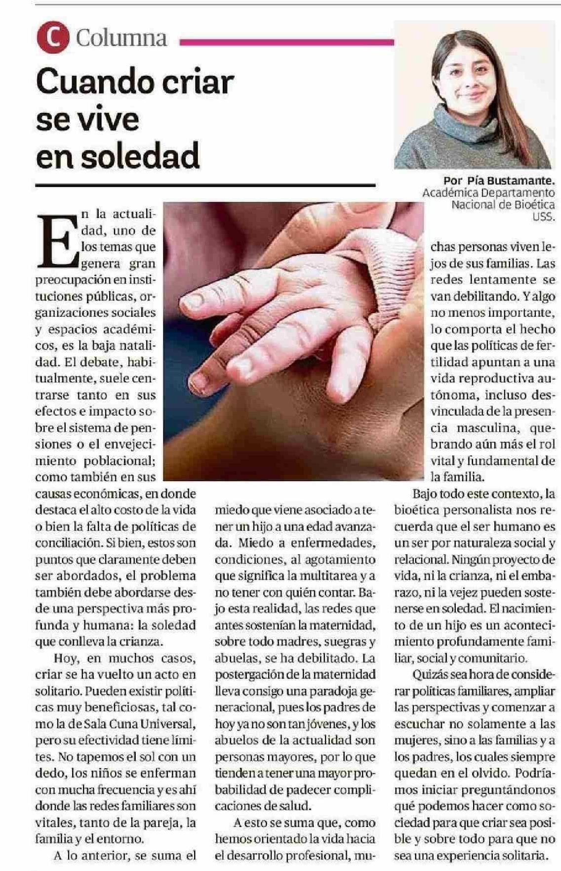 COLUMNAS DE OPINIÓN: Cuando criar se vive en soledad 29-05-2025 Crónica de Chillán |