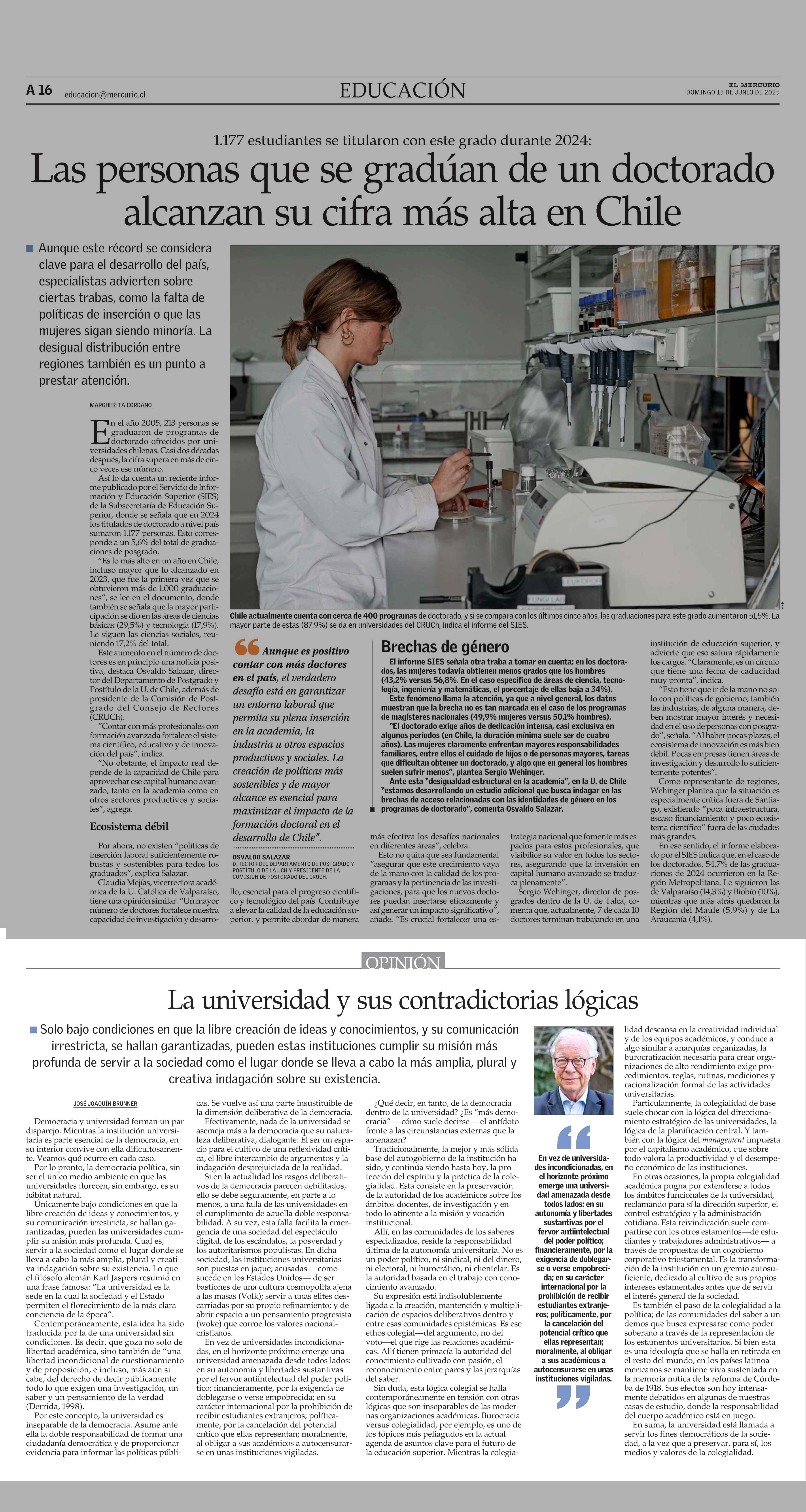 La universidad y sus contradictorias lógicas 15-06-2025 El Mercurio |