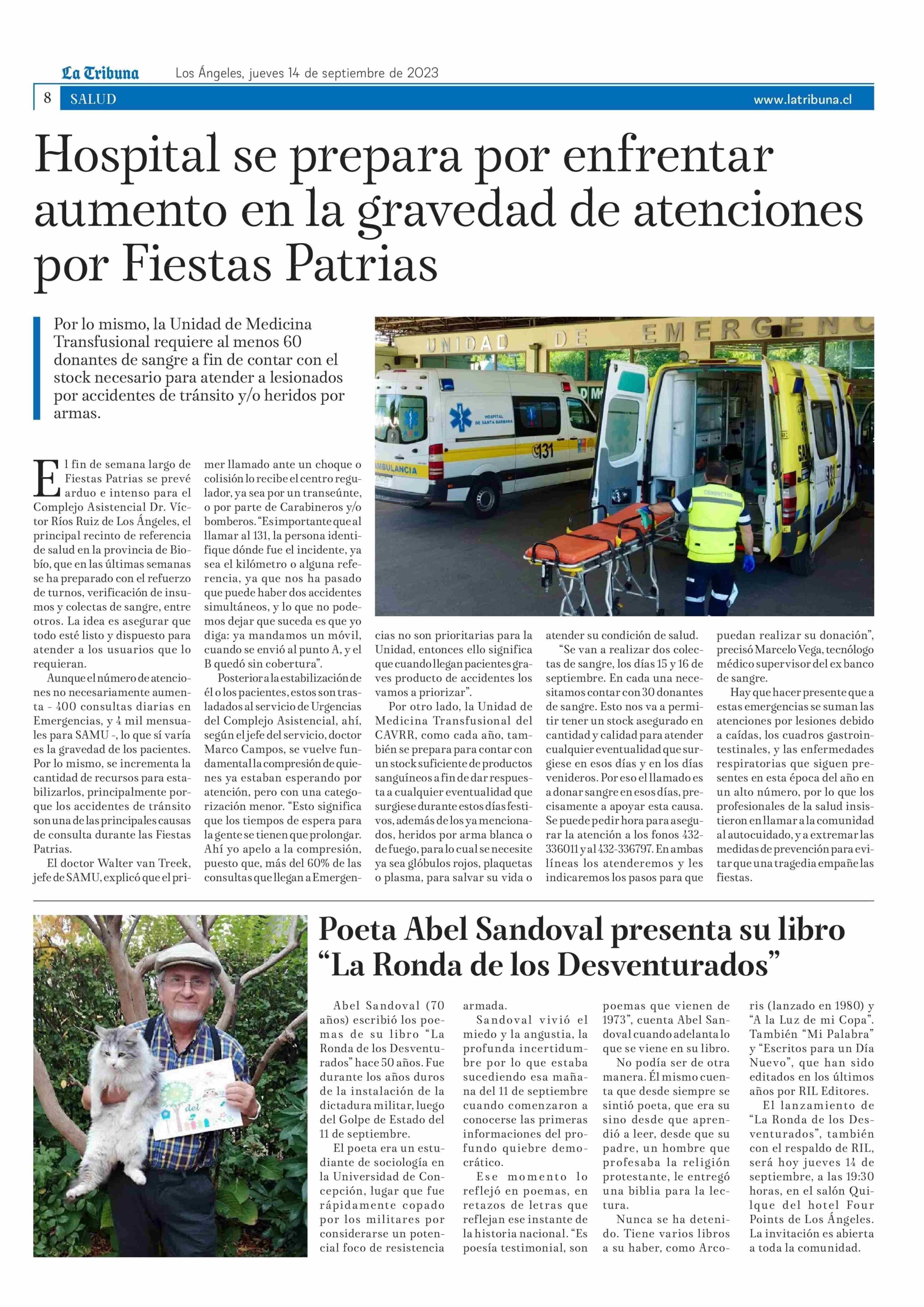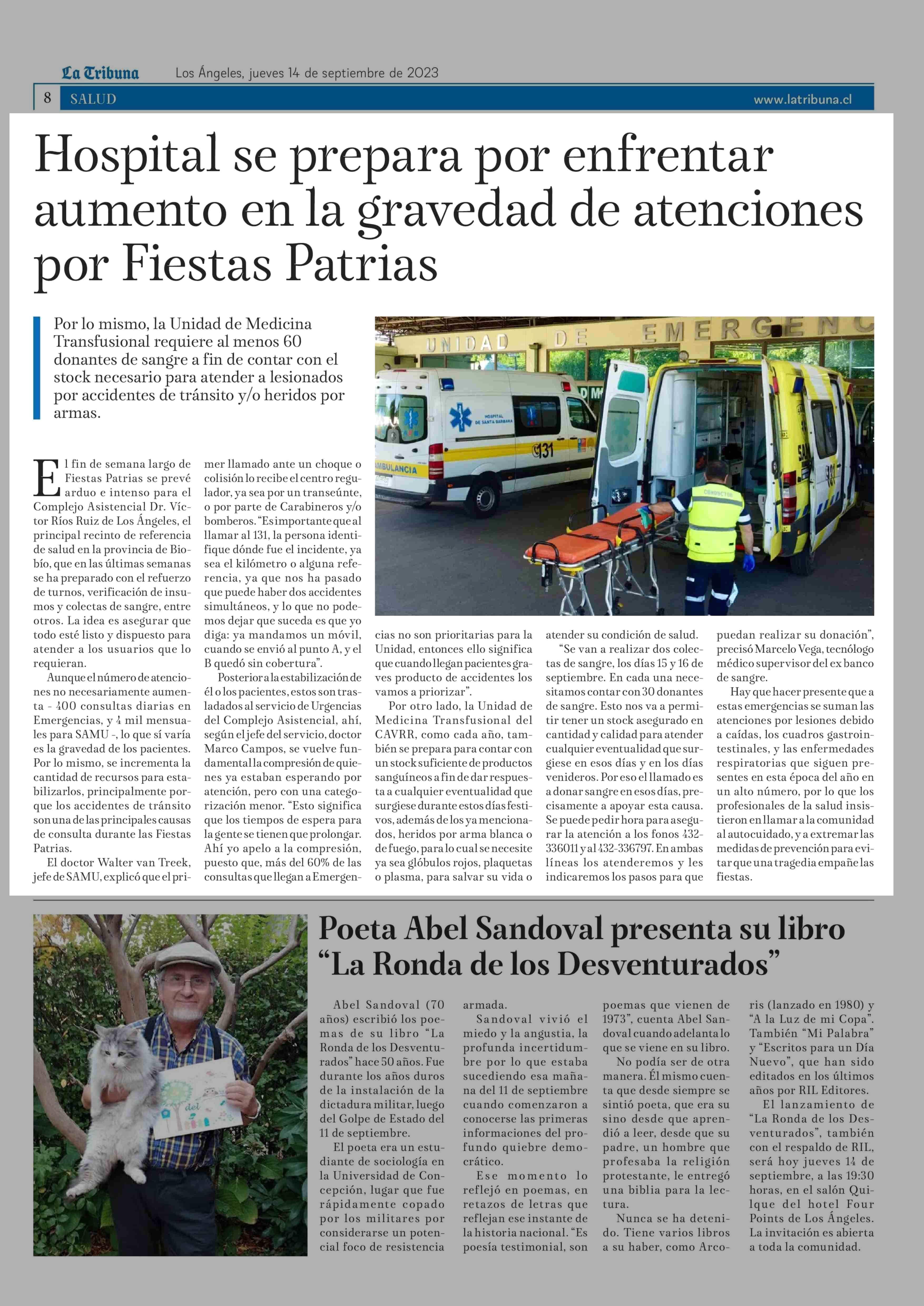 Hospital se prepara por enfrentar aumento en la gravedad de atenciones por Fiestas Patrias 14-09-2023 La Tribuna |