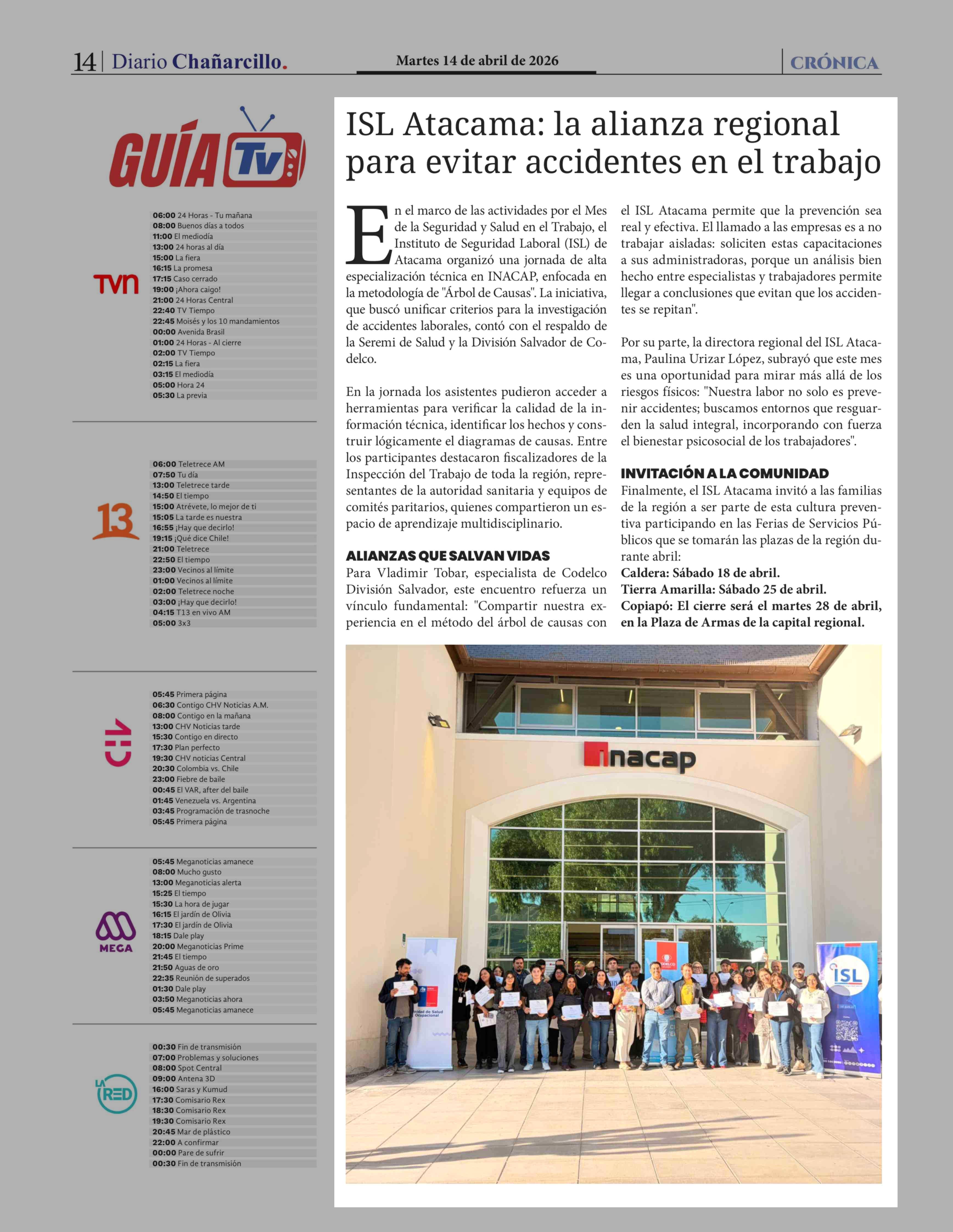 | Fecha: | 14-04-2026 | Sector: | Noticia general | Región: | Región de Atacama |