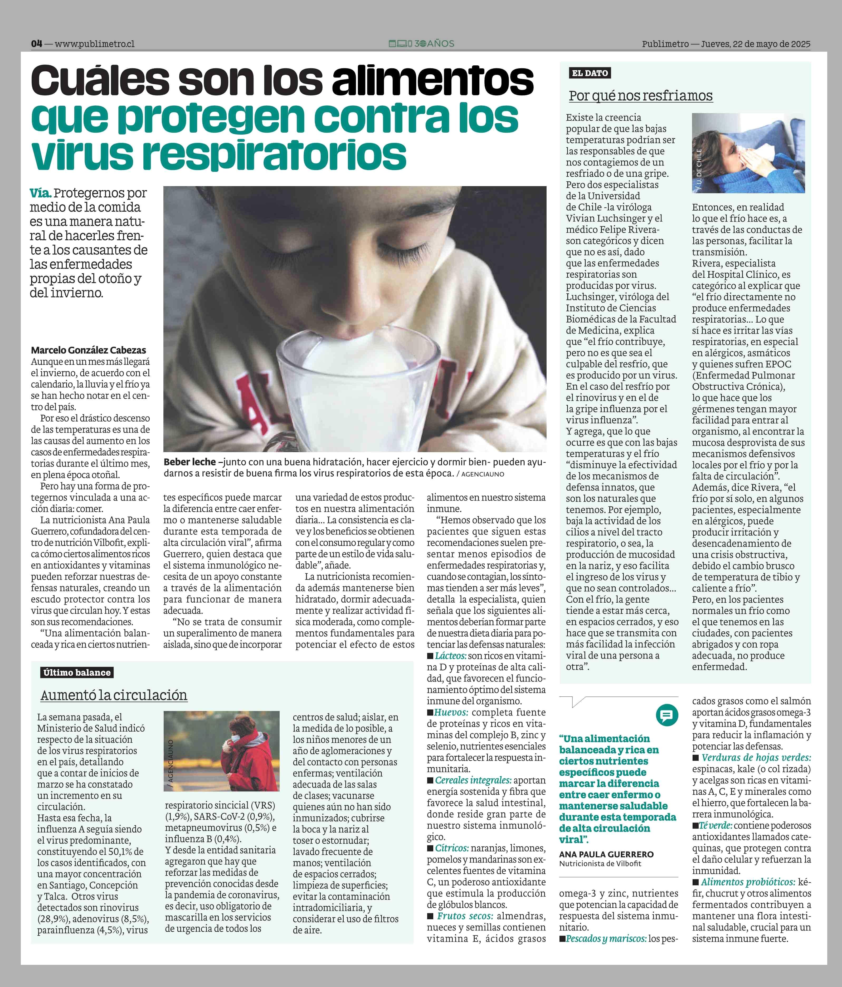 Cuáles son los alimentos que protegen contra los virus respiratorios 22-05-2025 Publimetro |