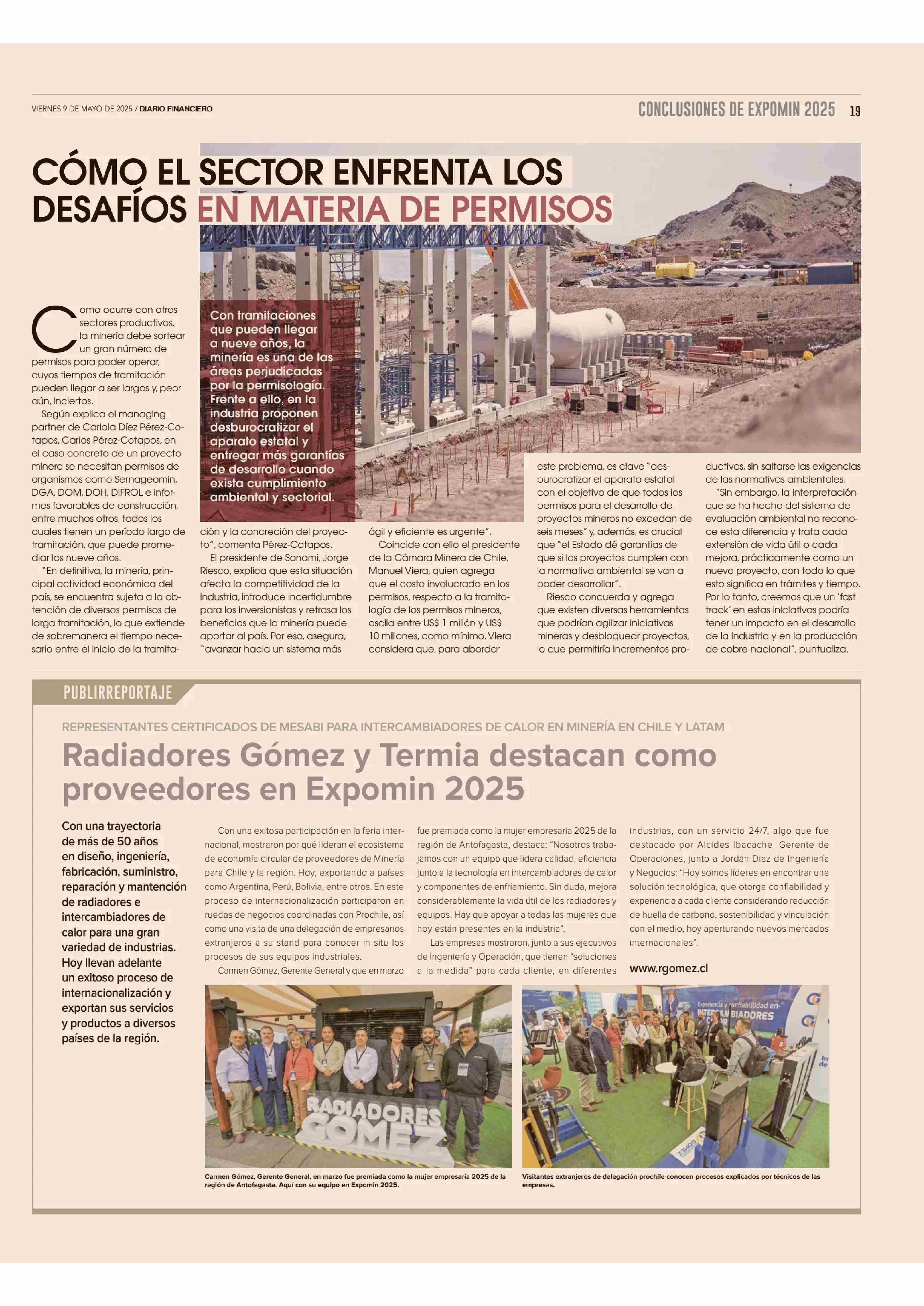 Radiadores Gómez y Termia destacan como proveedores en Expomin 2025 09-05-2025 Diario Financiero |
