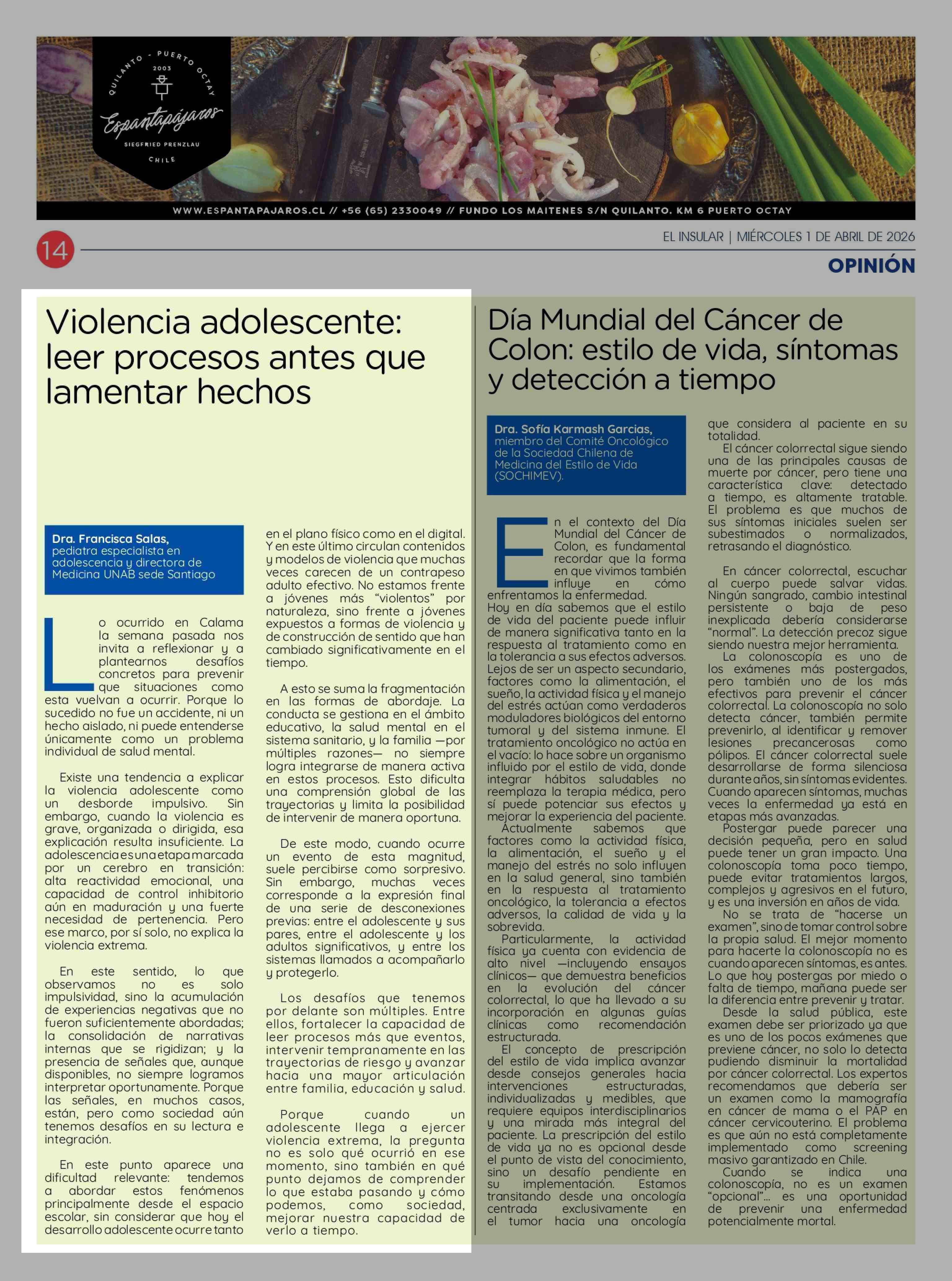 | Fecha: | 01-04-2026 | Sector: | Columnas de Opinión | Región: | Región de Los Lagos |