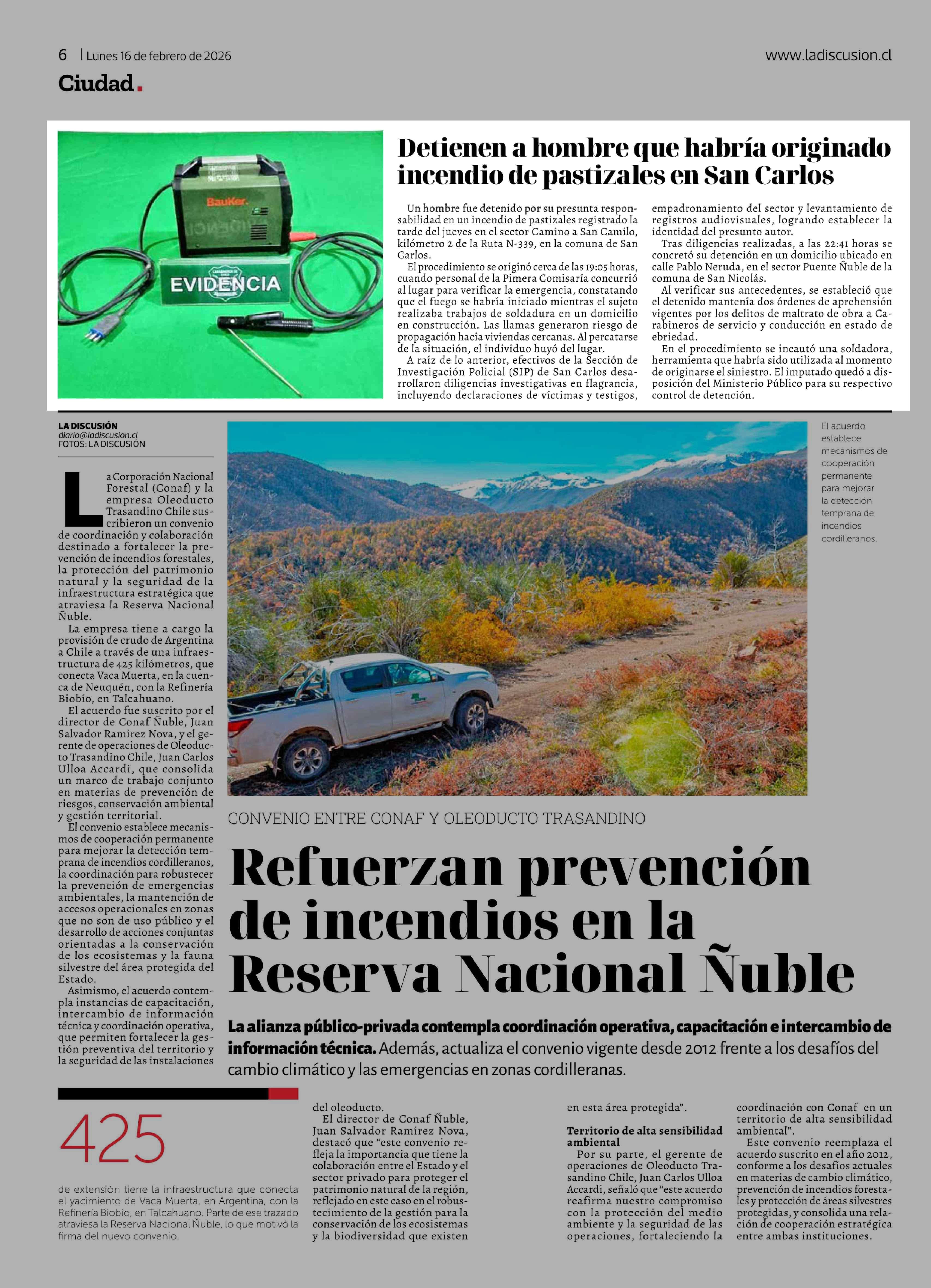 Fecha: 16-02-2026 Sector: Noticia general Región: Región del Ñuble