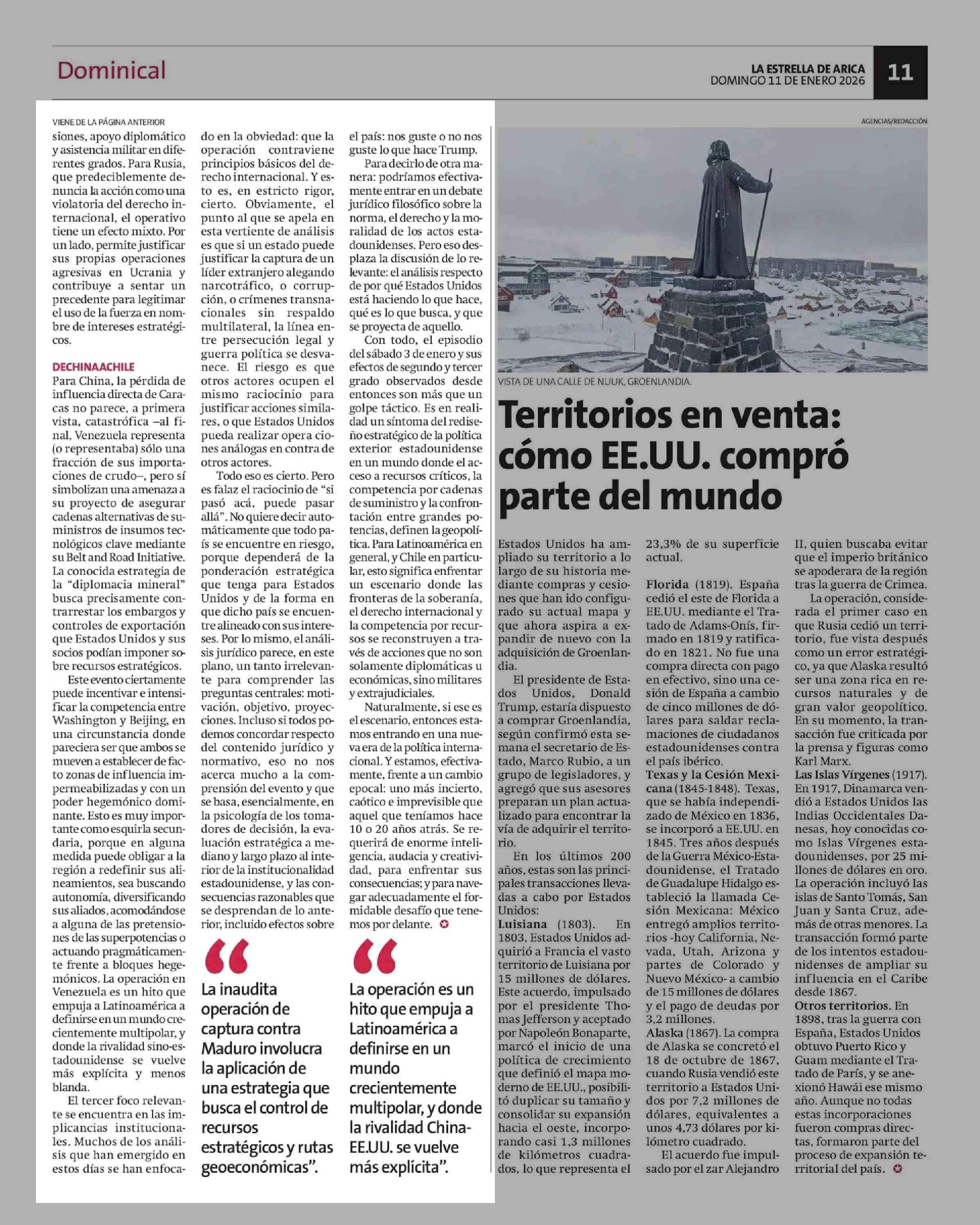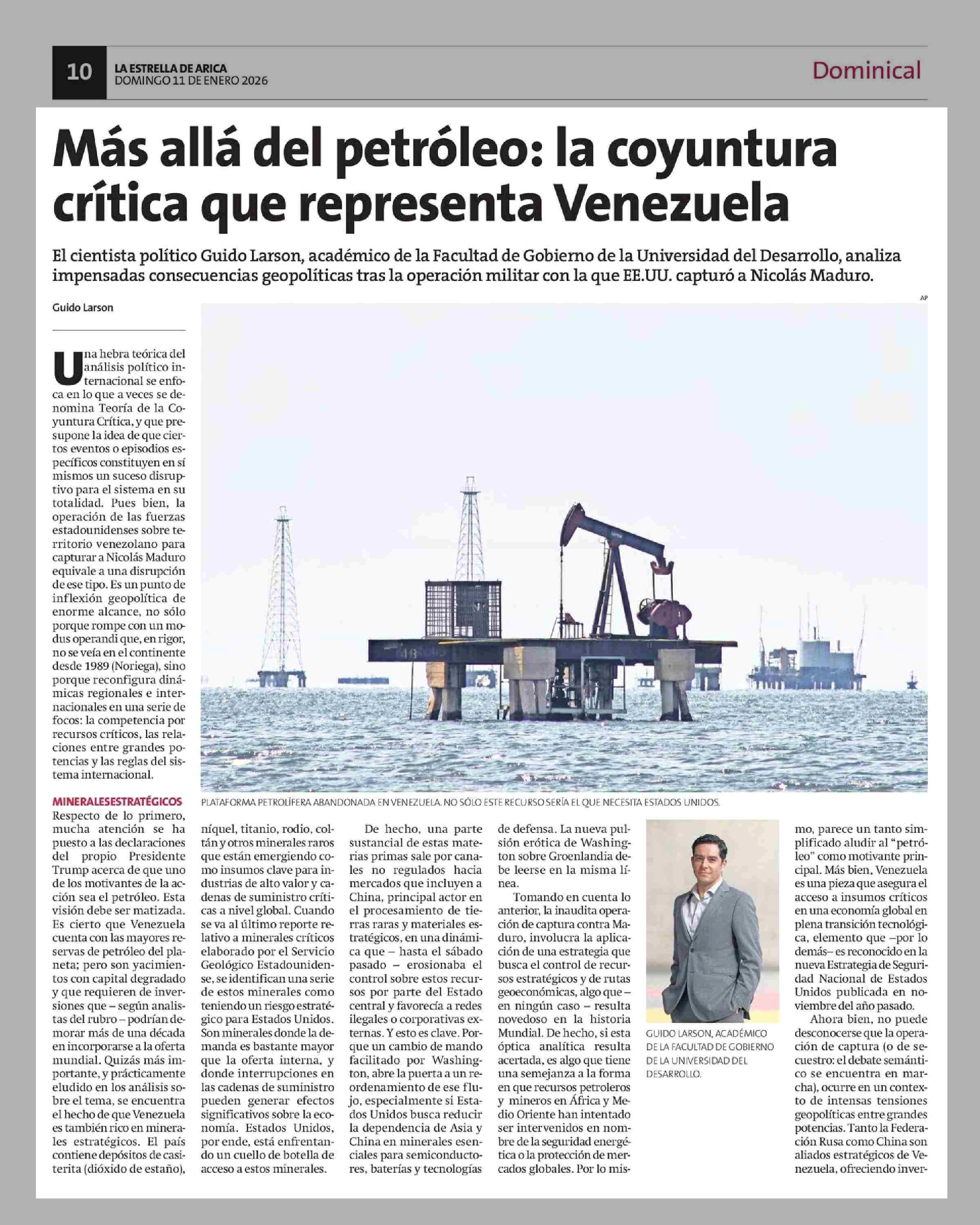 Más allá del petróleo: la coyuntura crítica que representa Venezuela 11-01-2026 La Estrella de Arica |