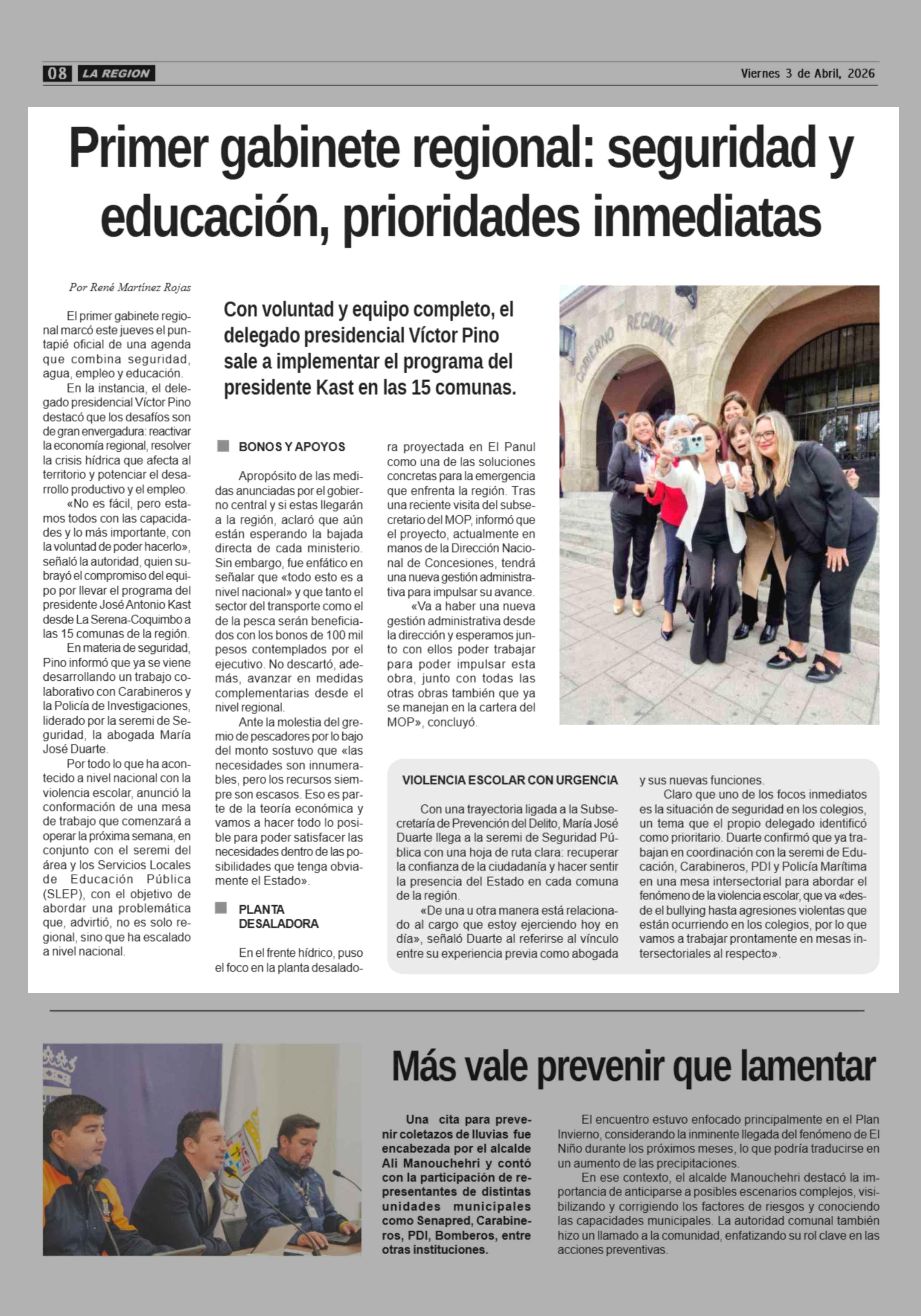 Primer gabinete regional: seguridad y educación, prioridades inmediatas 03-04-2026 Diario la Región |