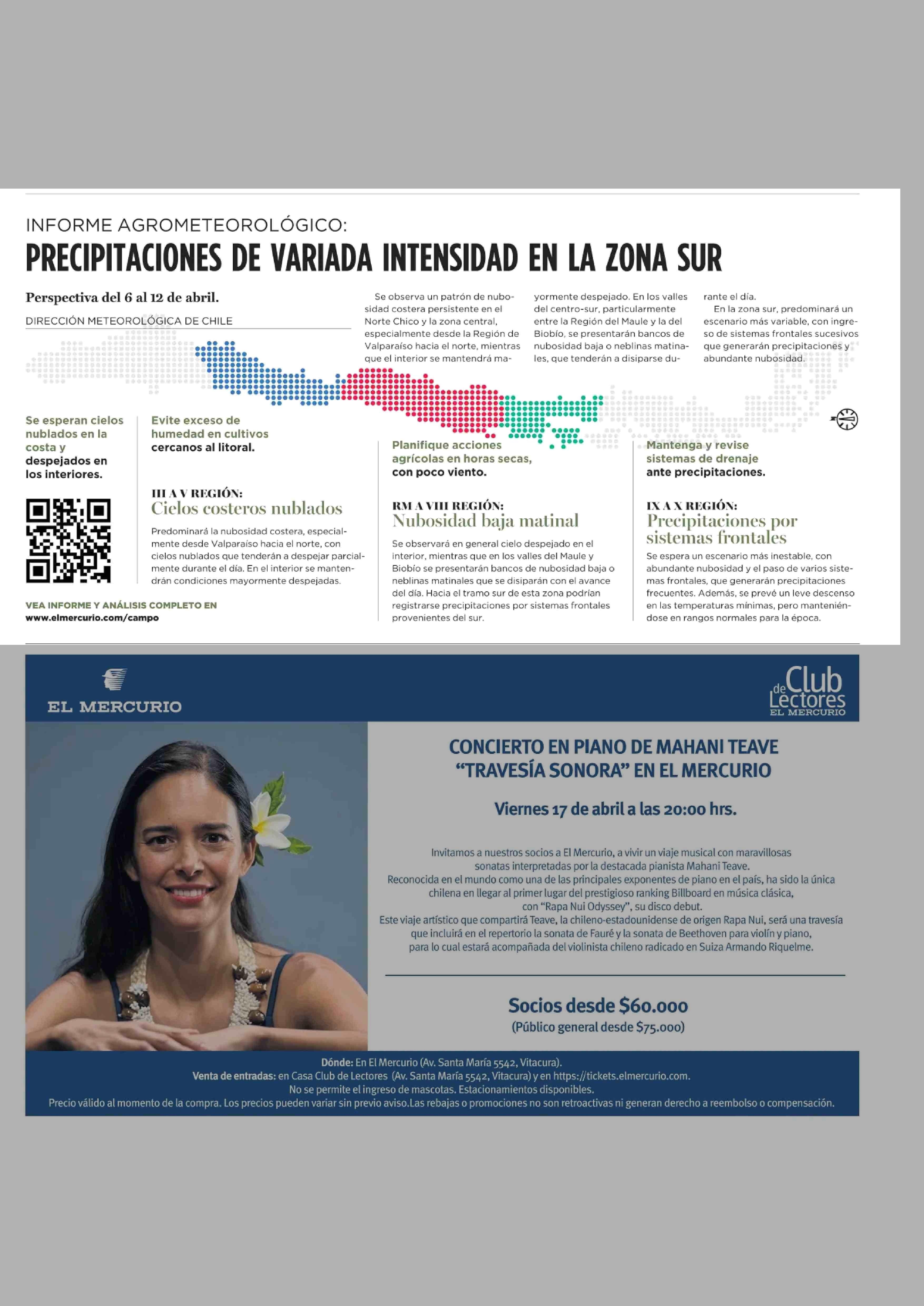 PRECIPITACIONES DE VARIADA INTENSIDAD EN LA ZONA SUR 06-04-2026 El Mercurio |