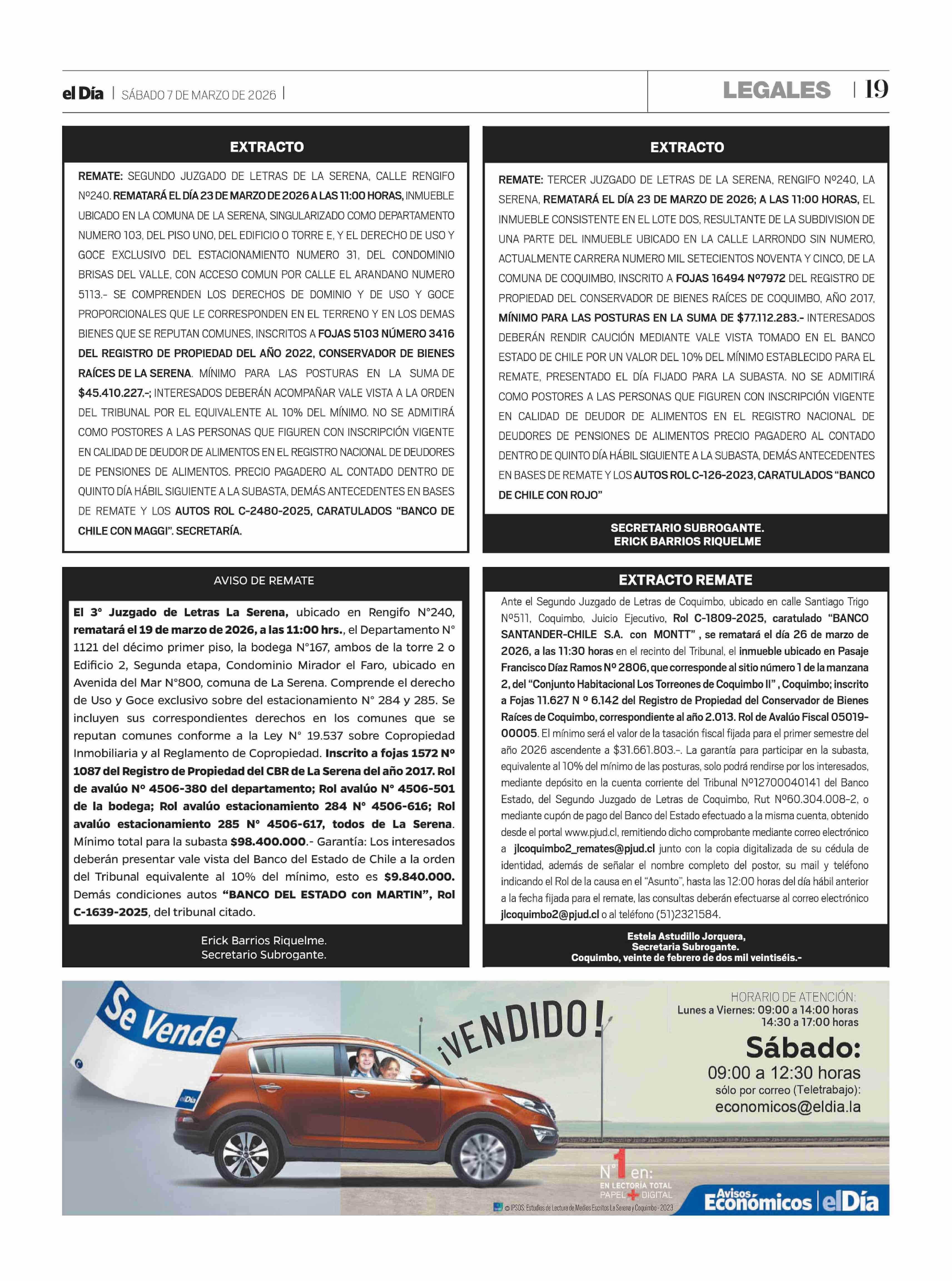 AVISO DE REMATE 07-03-2026 El Día |