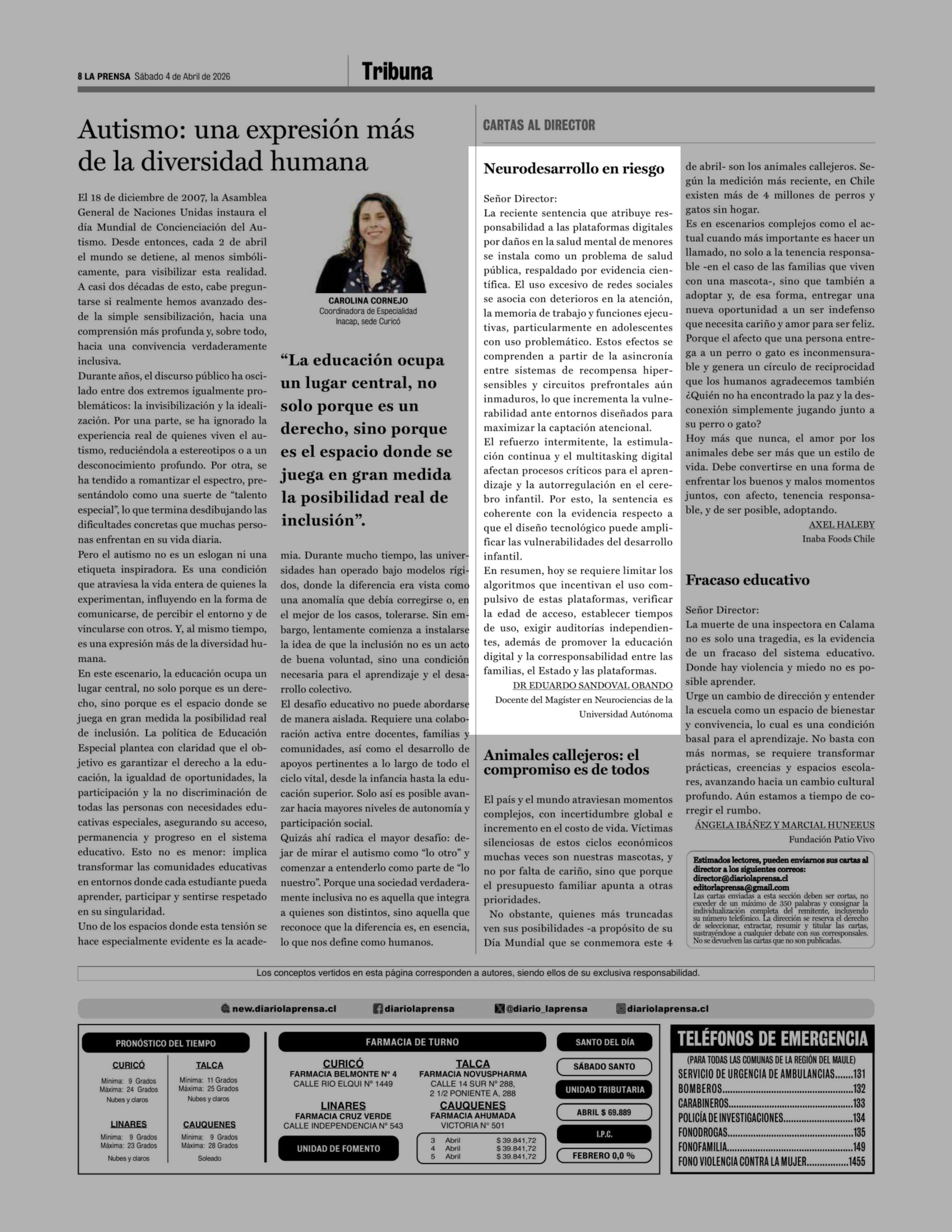 Fuente: La Prensa de Curicó (La Prensa de Curicó) Página(s): 8