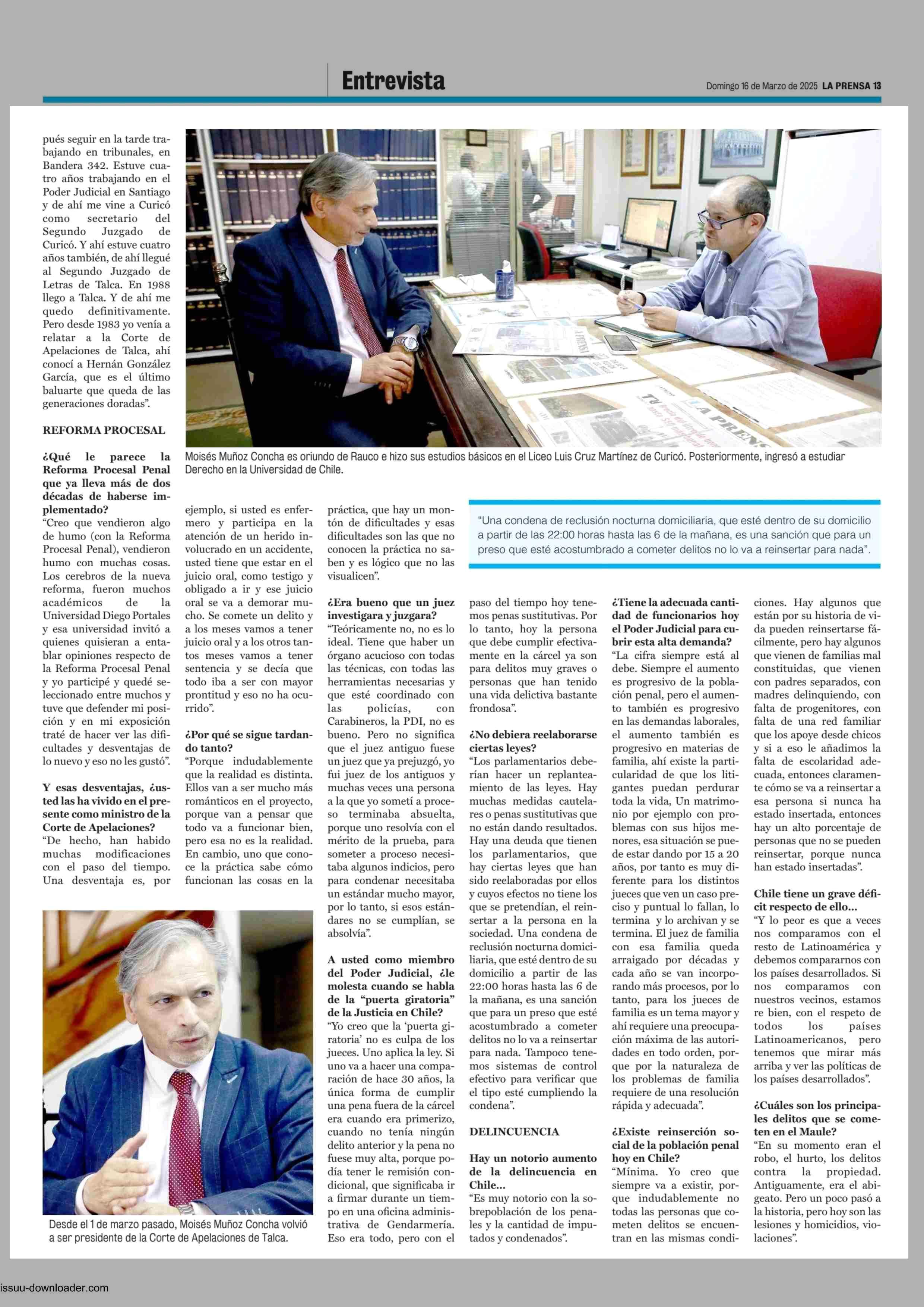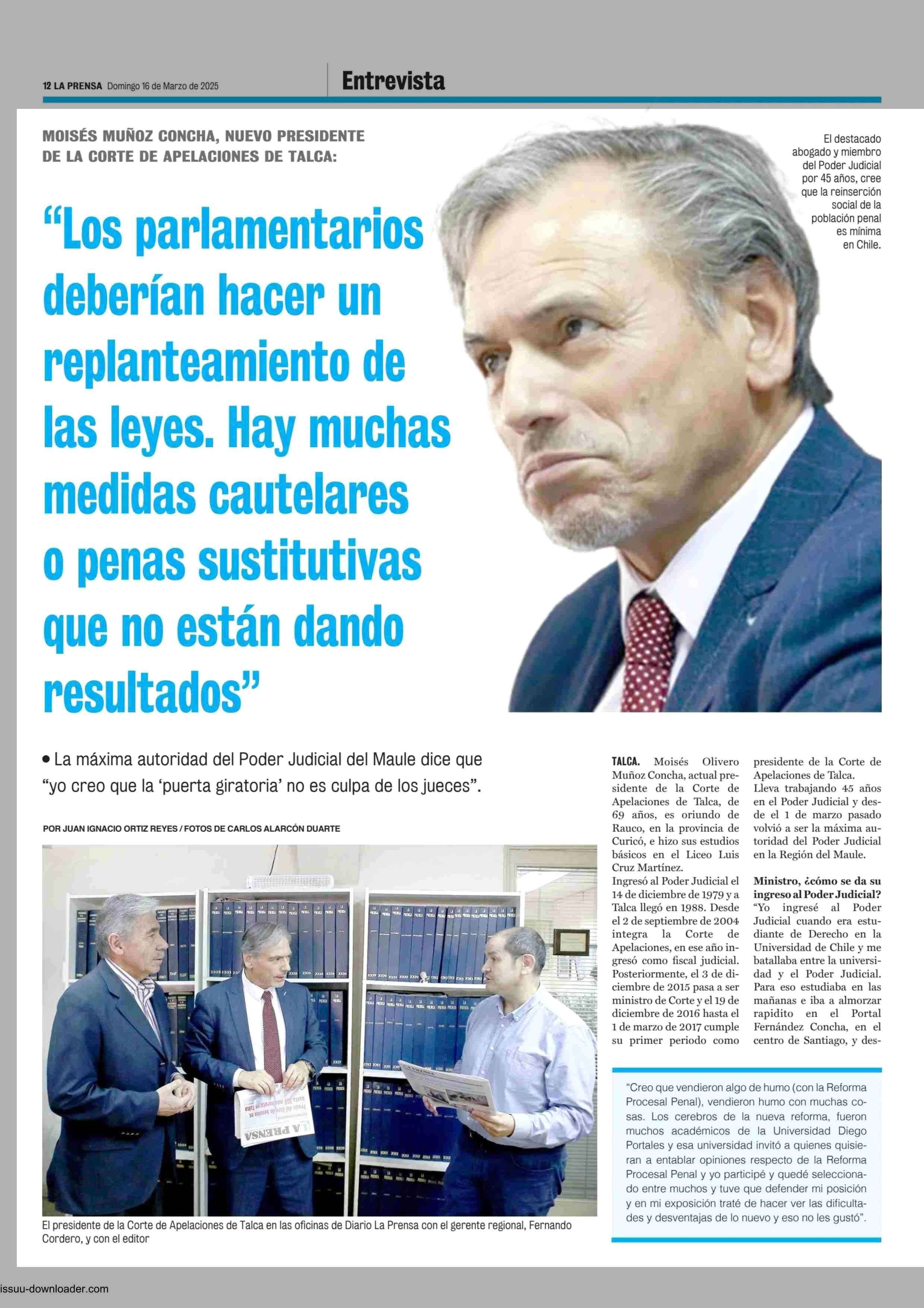 “Los parlamentarios deberían hacer un replanteamiento de * las leyes. Hay muchas medidas cautelares o penas sustitutivas que no están dando resultados” 16-03-2025 La Prensa de Curicó |