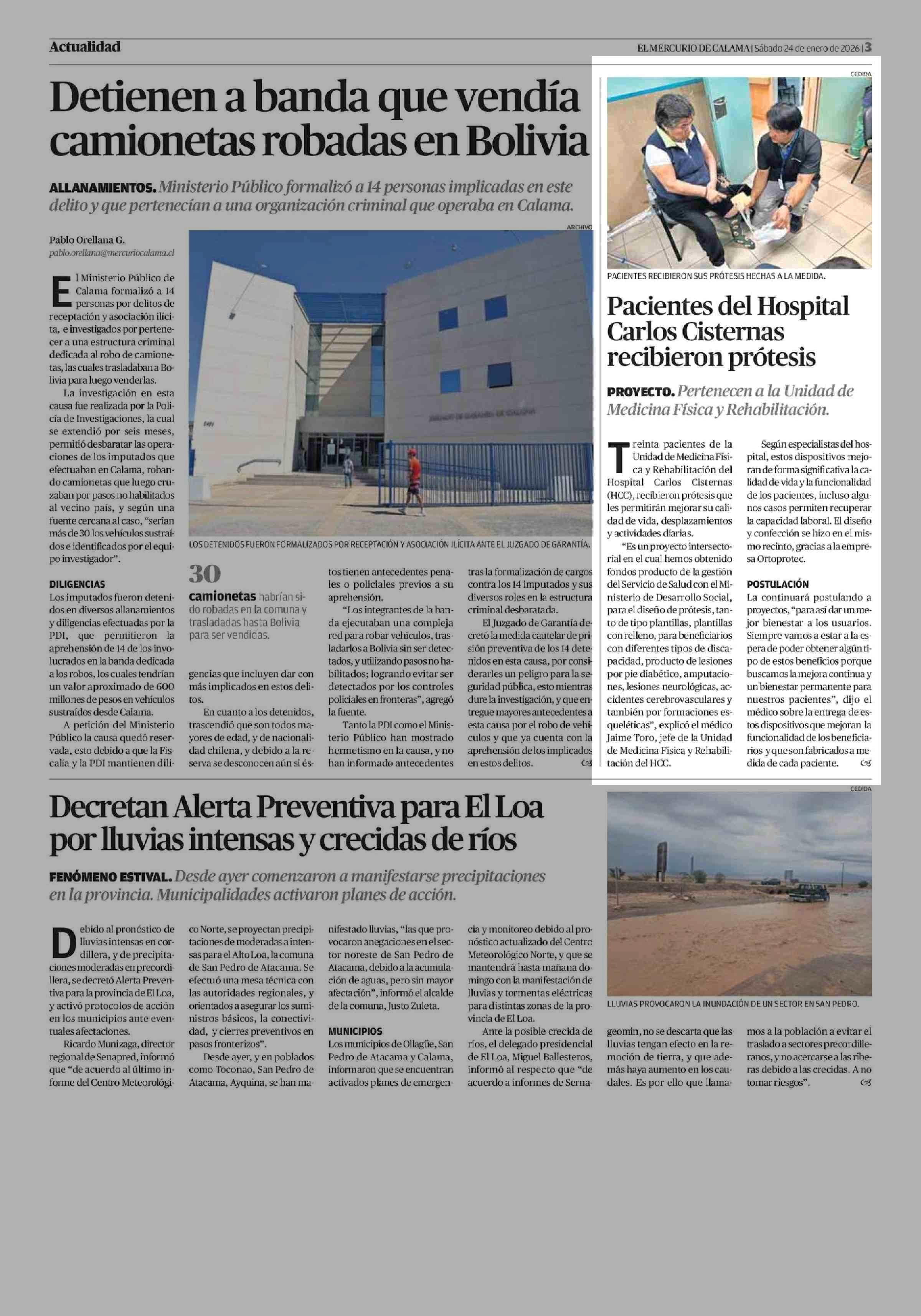 Pacientes del Hospital Carlos Cisternas recibieron prótesis 24-01-2026 El Mercurio de Calama |