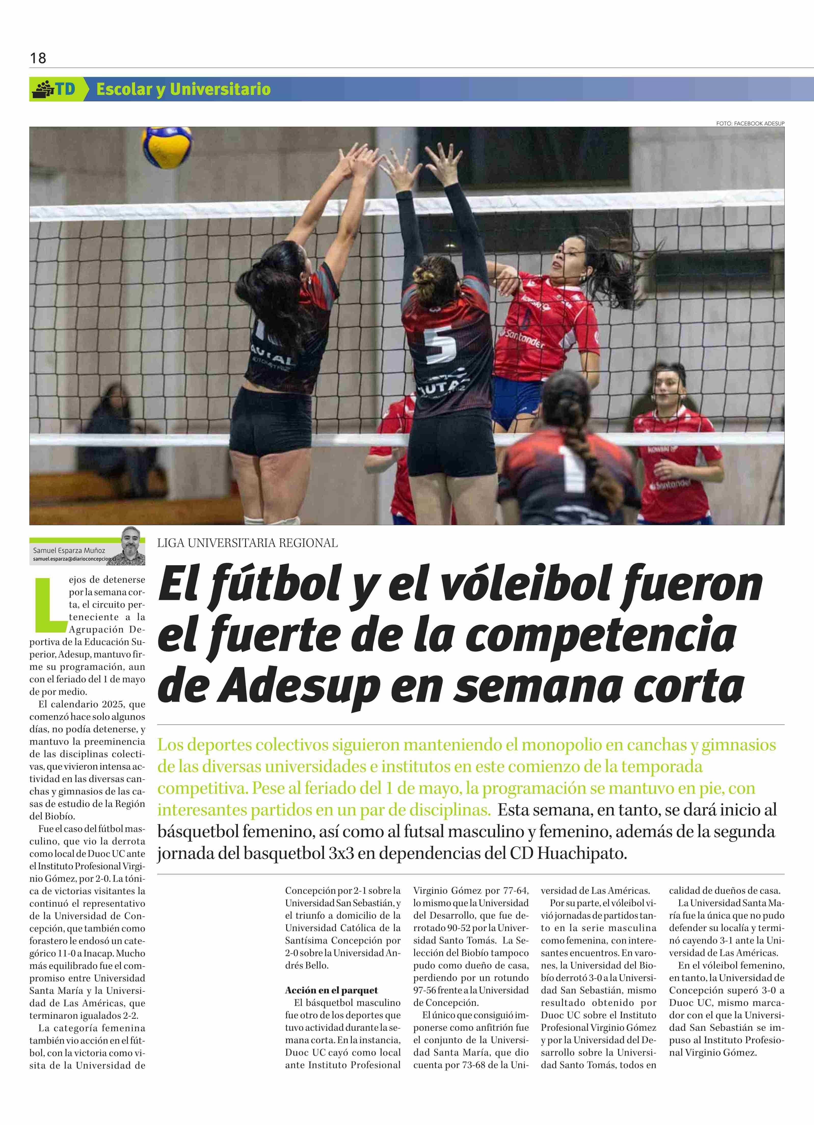 El fútbol y el vóleibol fueron el fuerte de la competencia de Adesup en semana corta 05-05-2025 Diario Concepción |
