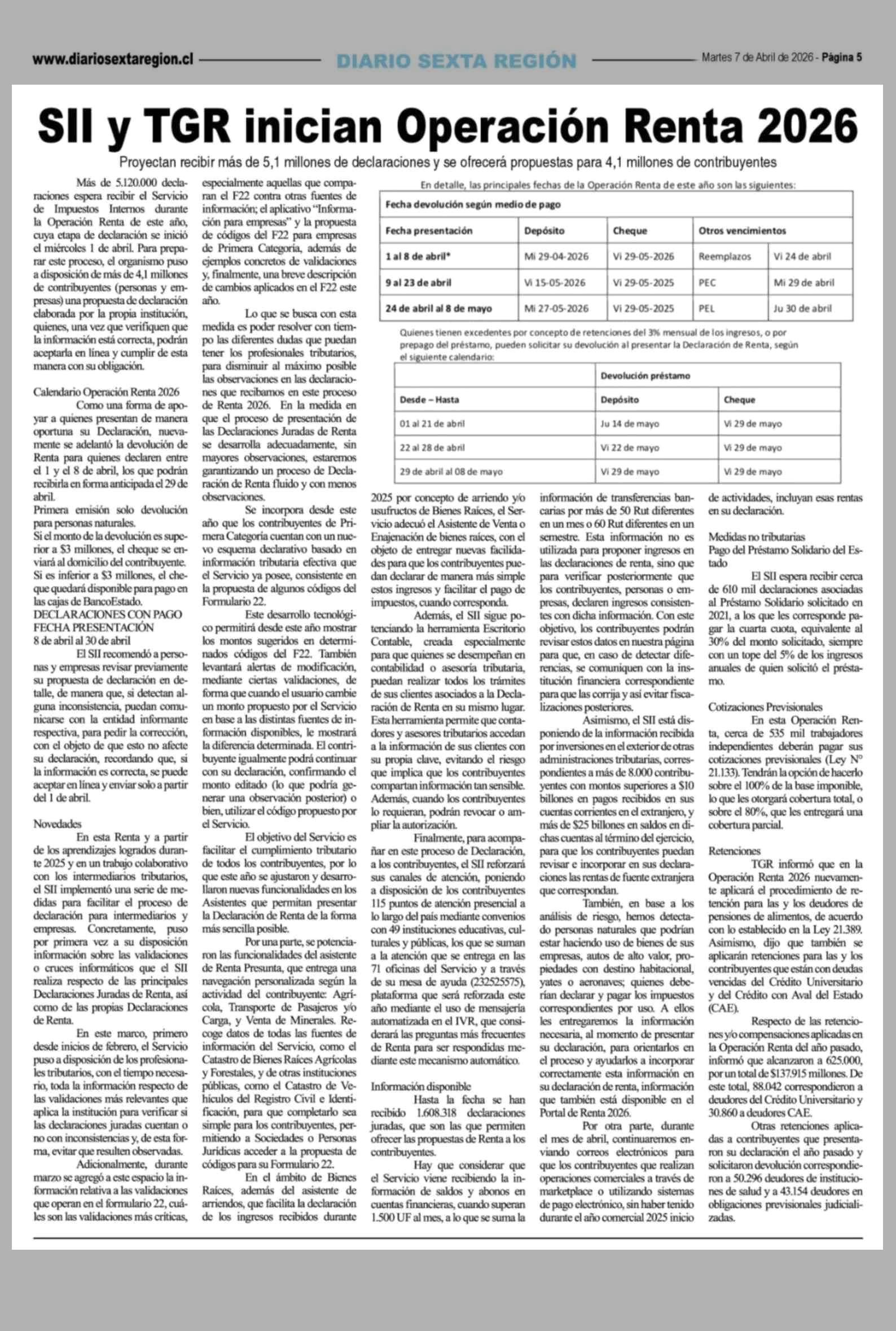 Fuente: Diario VI Región (Diario VI Región) Página(s): 5