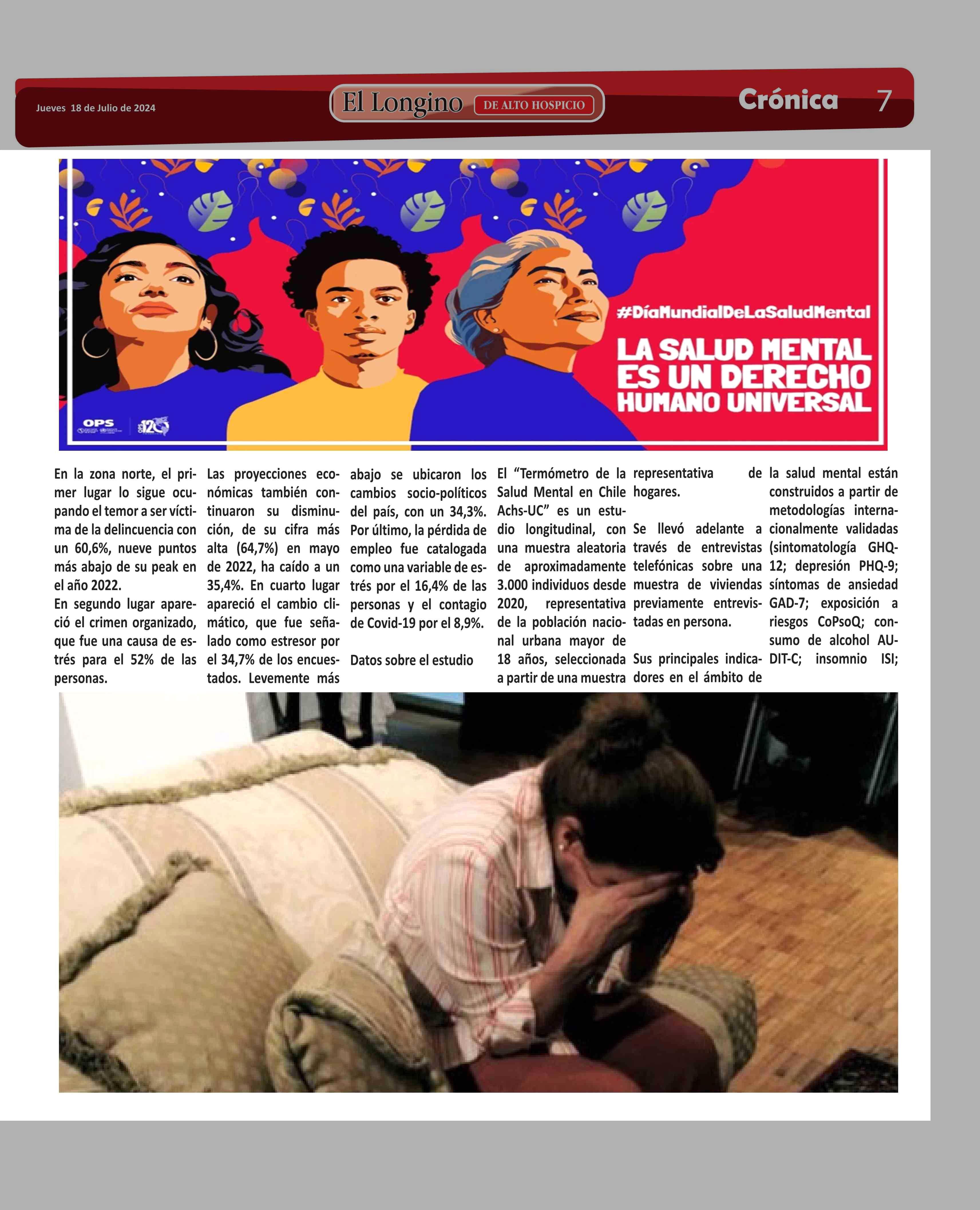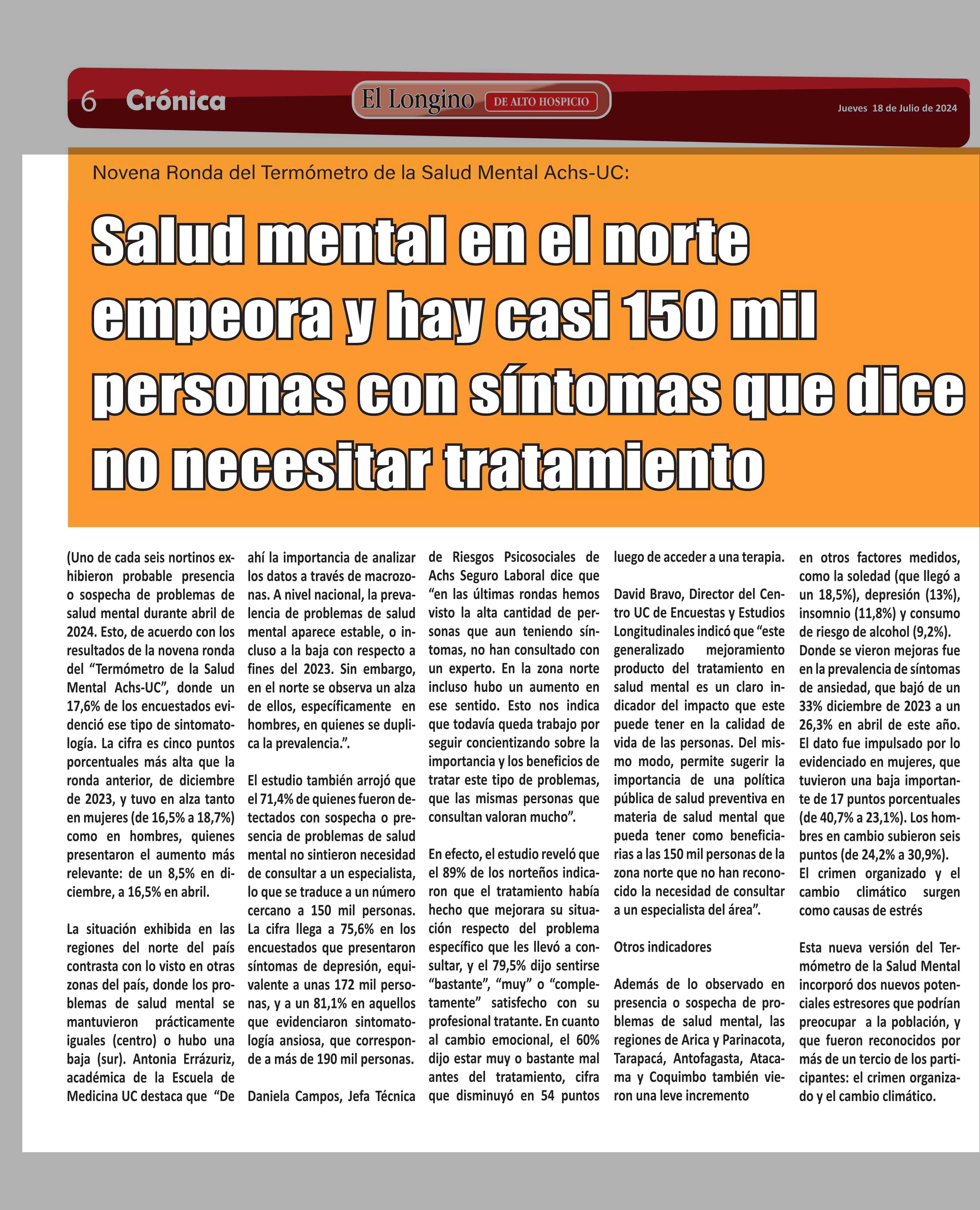 | Título: | Salud mental en el norte empeora y hay caso 150 mil personas con síntomas que dice no necesitar tratamiento |