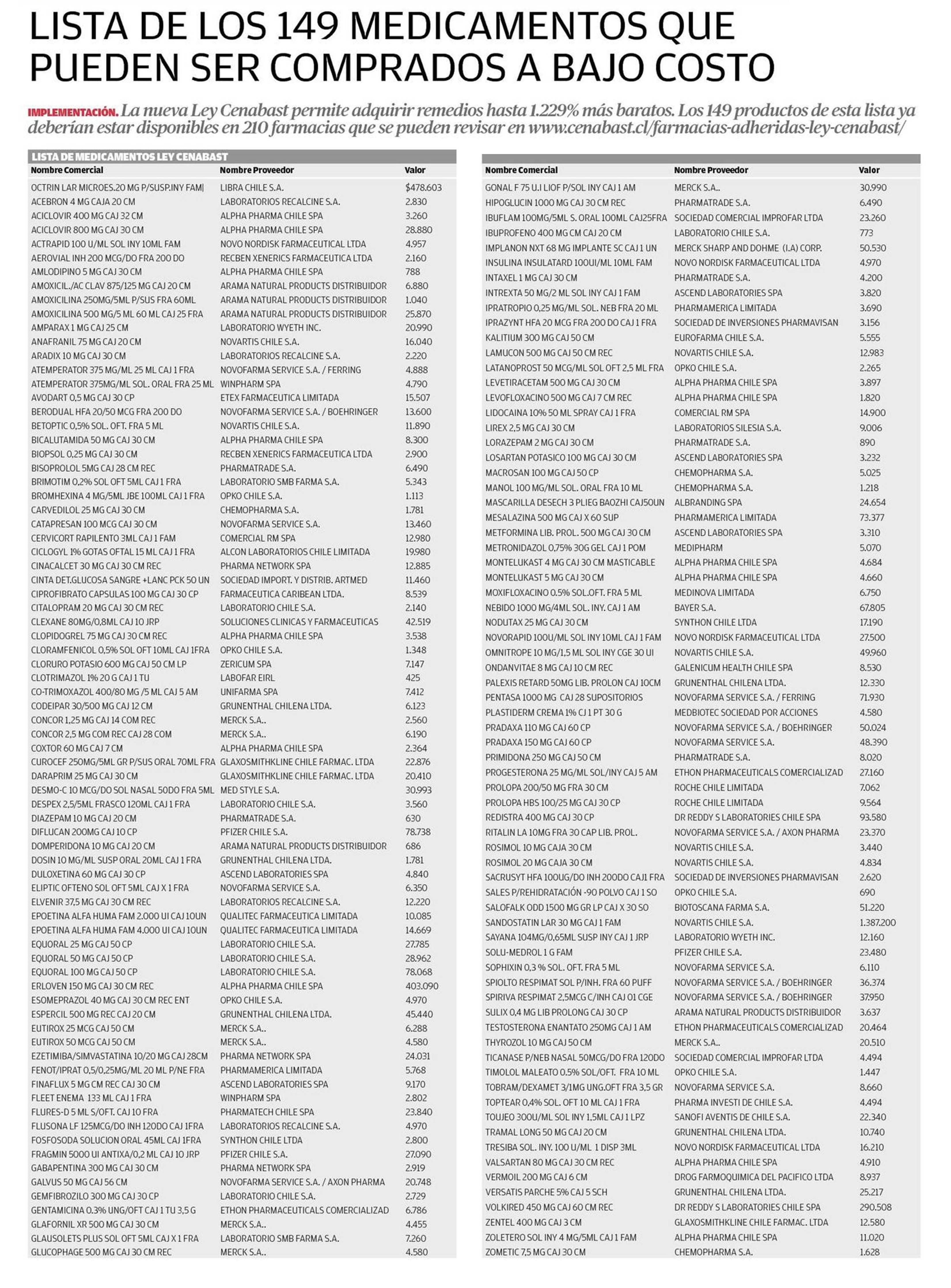 LISTA DE LOS 149 MEDICAMENTOS QUE PUEDEN SER COMPRADOS A BAJO COSTO 06-09-2020 Diario Austral Región de Los Ríos |
