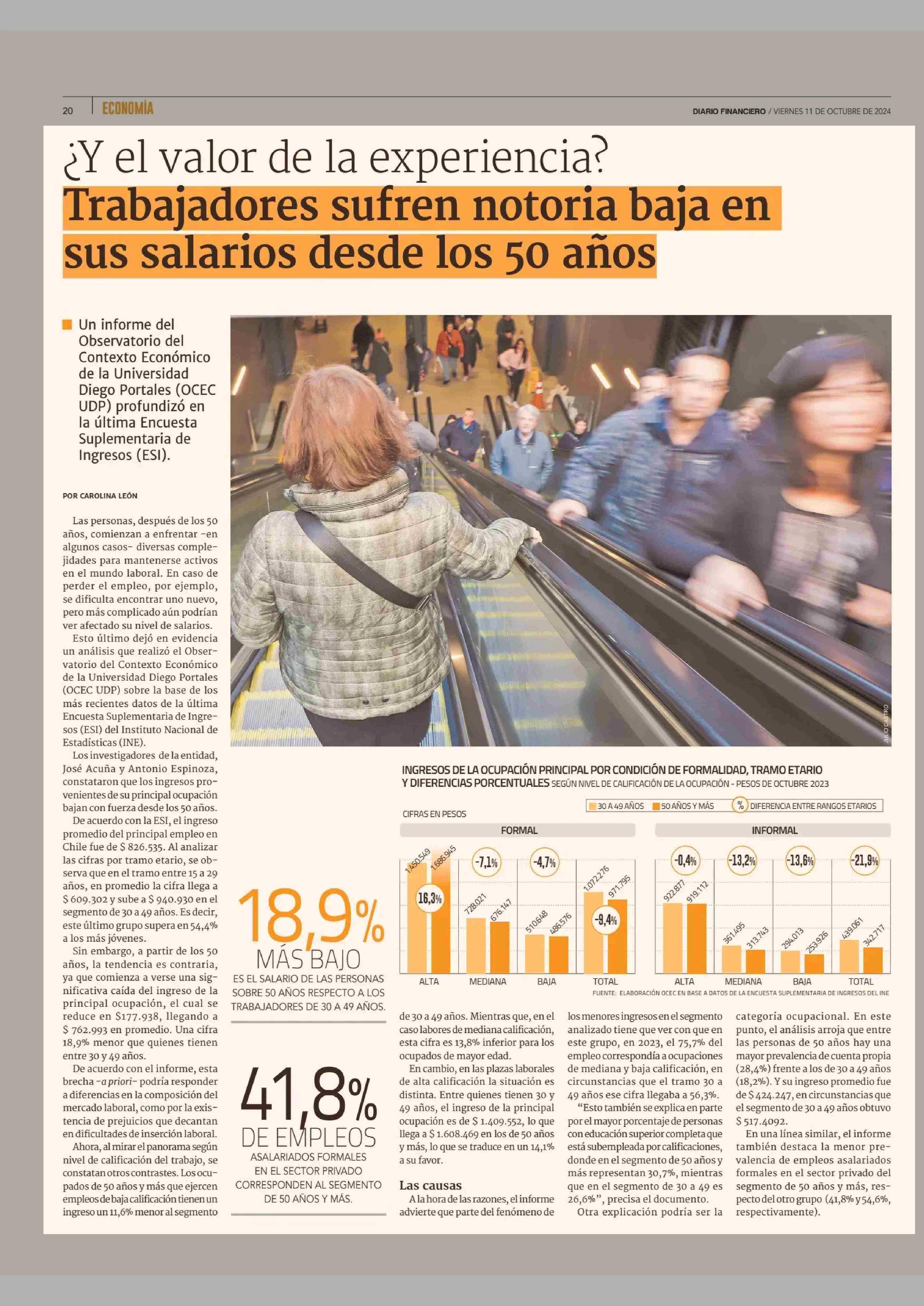 ¿Y el valor de la experiencia? Trabajadores sufren notoria baja en sus salarios desde los 50 años 11-10-2024 Diario Financiero |
