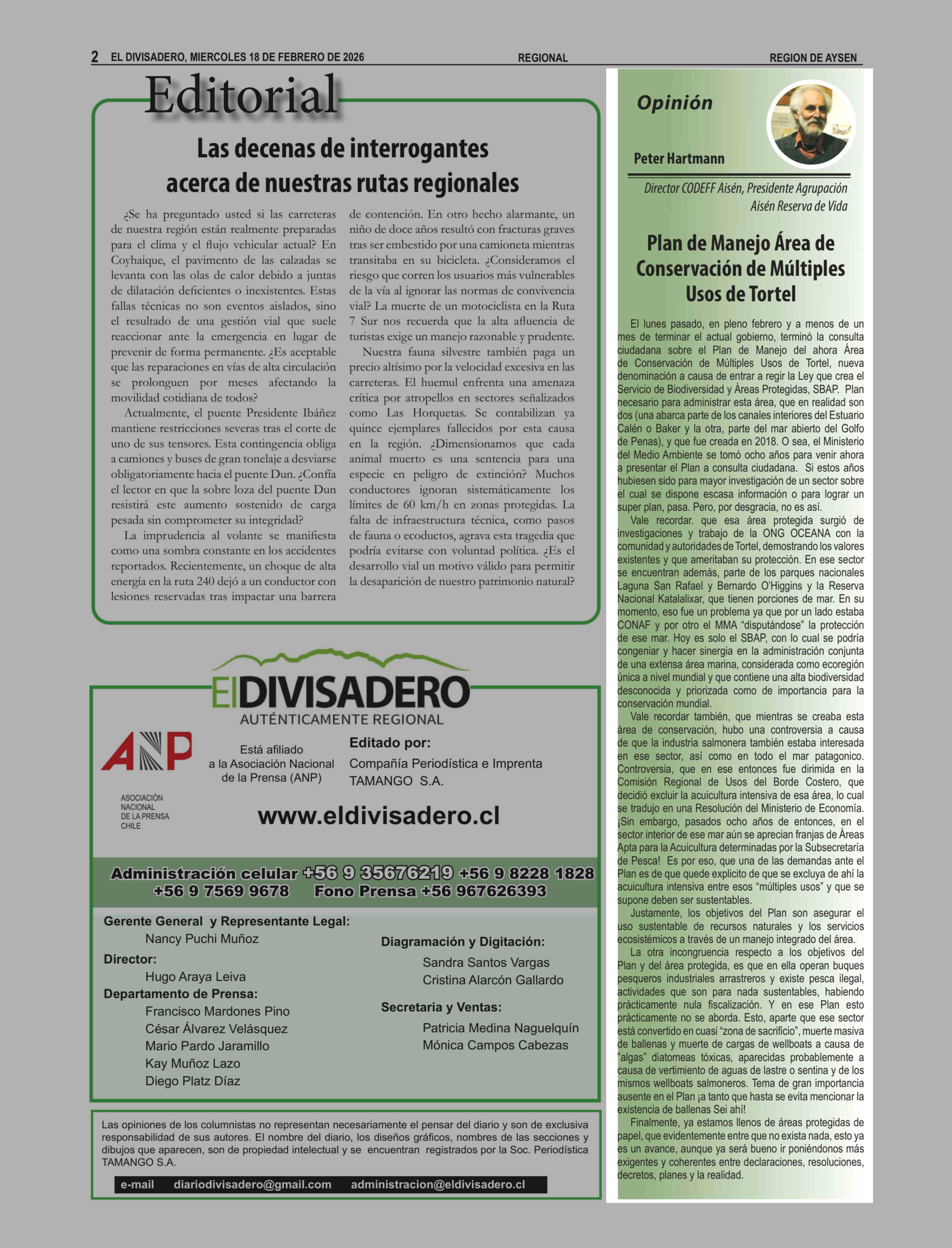 Columnas de Opinión: Plan de Manejo Área de Conservación de Múltiples Usos de Tortel 18-02-2026 El Divisadero |