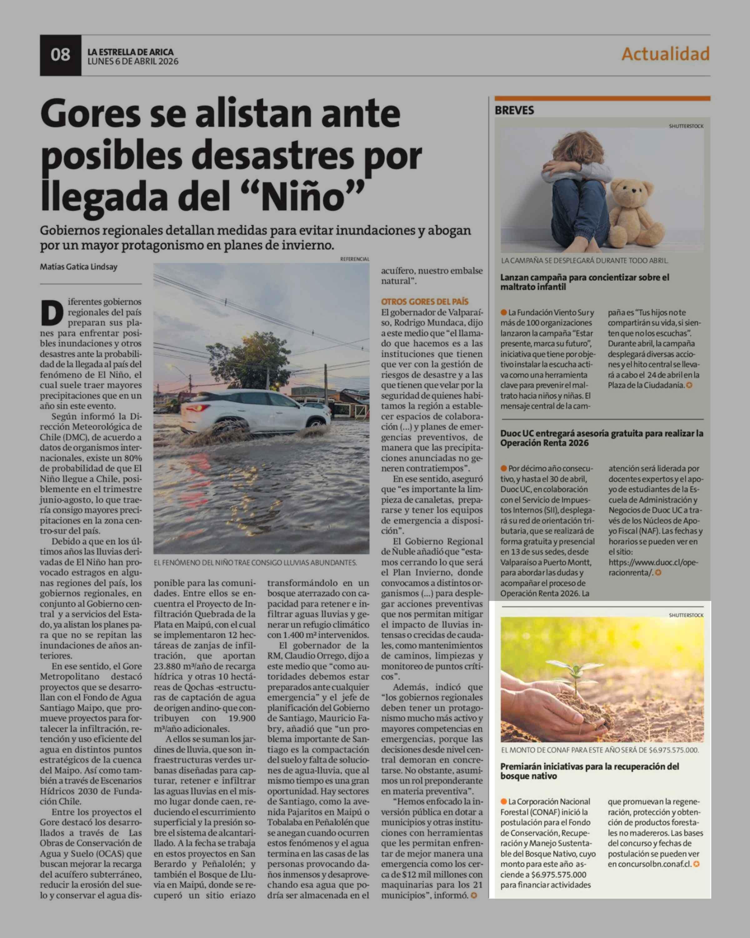 Premiarán iniciativas para la recuperación del bosque nativo 06-04-2026 La Estrella de Arica |