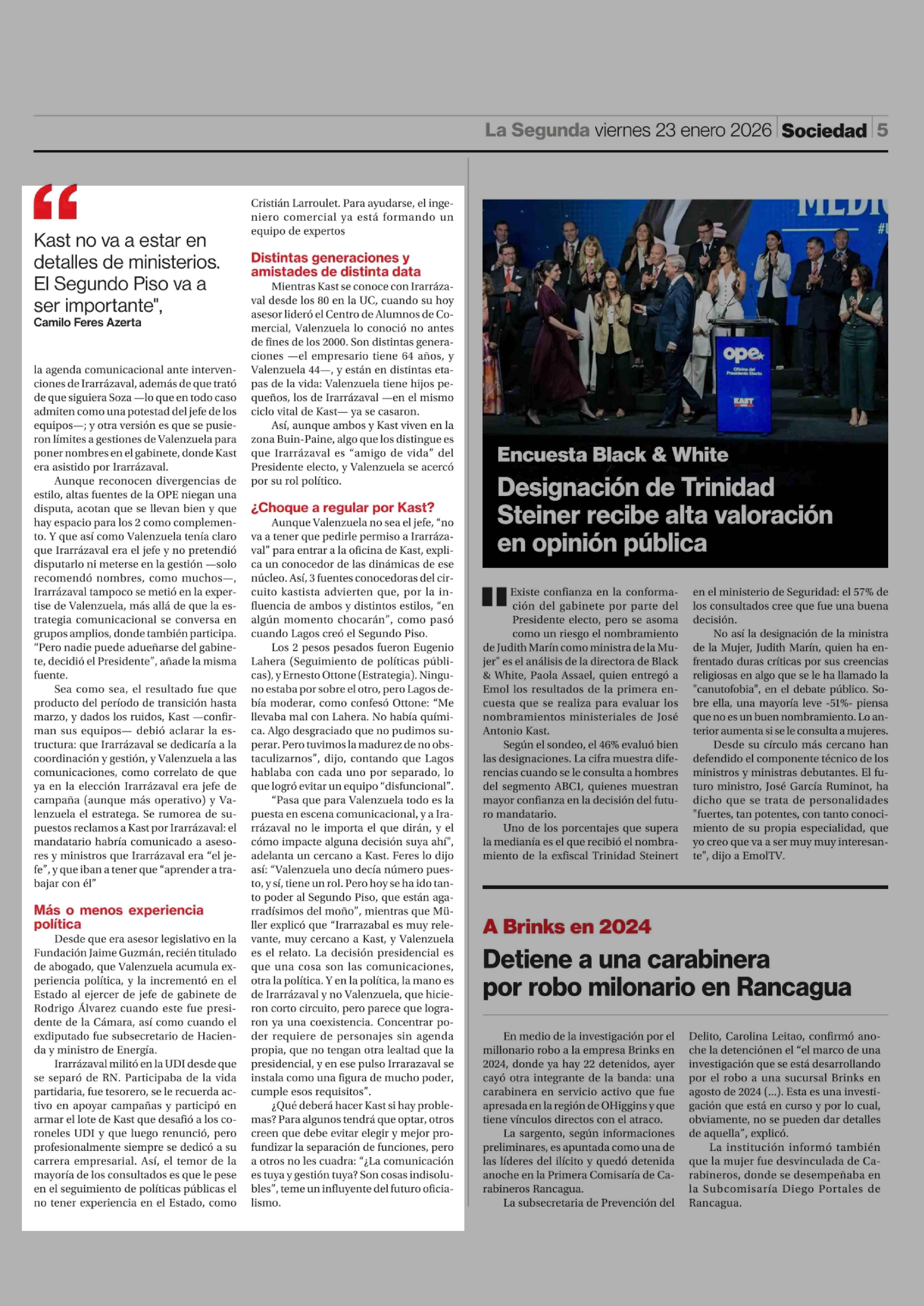 Los estilos distintos de los 2 hemisferios del Segundo Piso de Kast 23-01-2026 La Segunda |