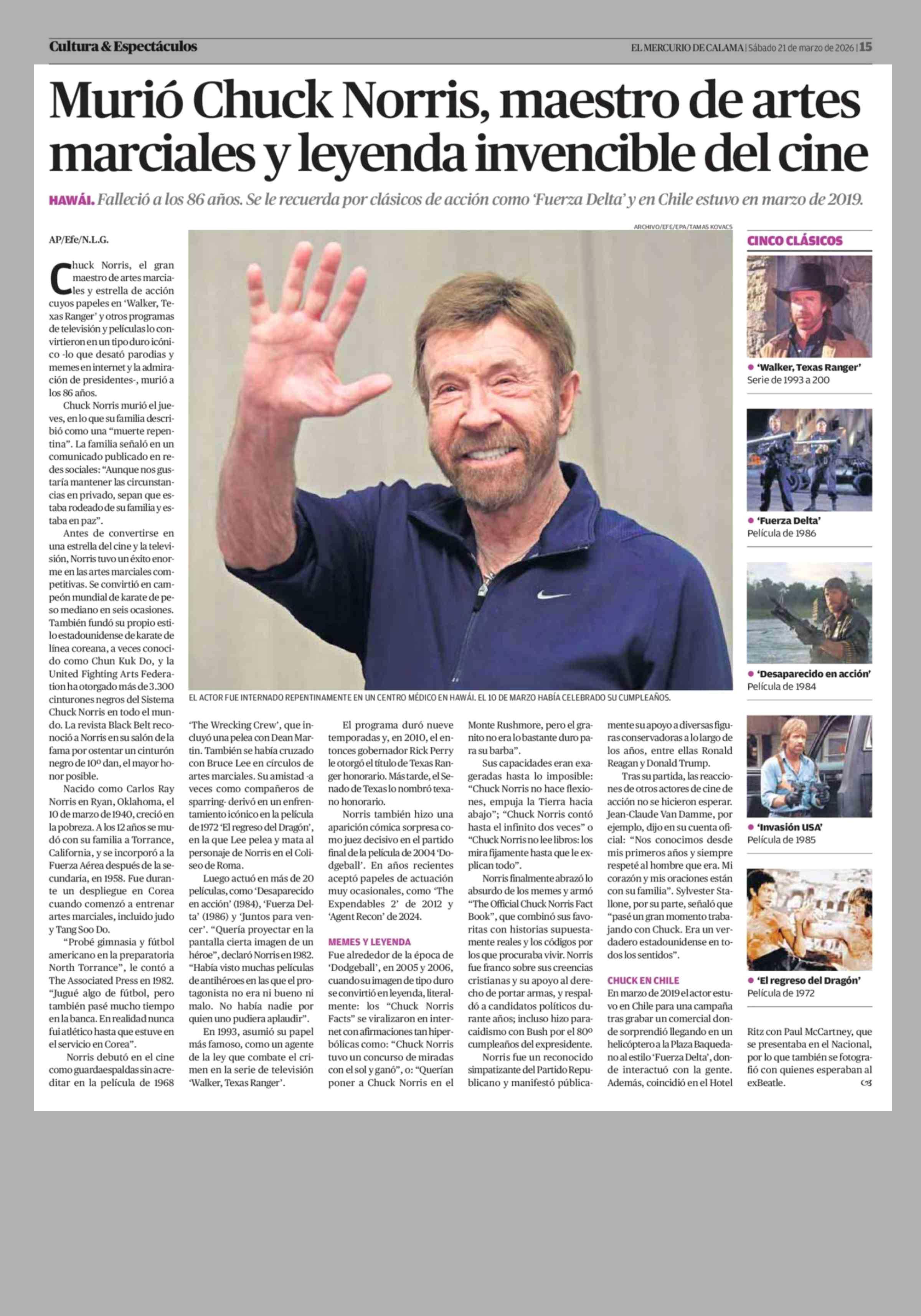 Título: Murió Chuck Norris, maestro de artes marciales y leyenda invencible del cine