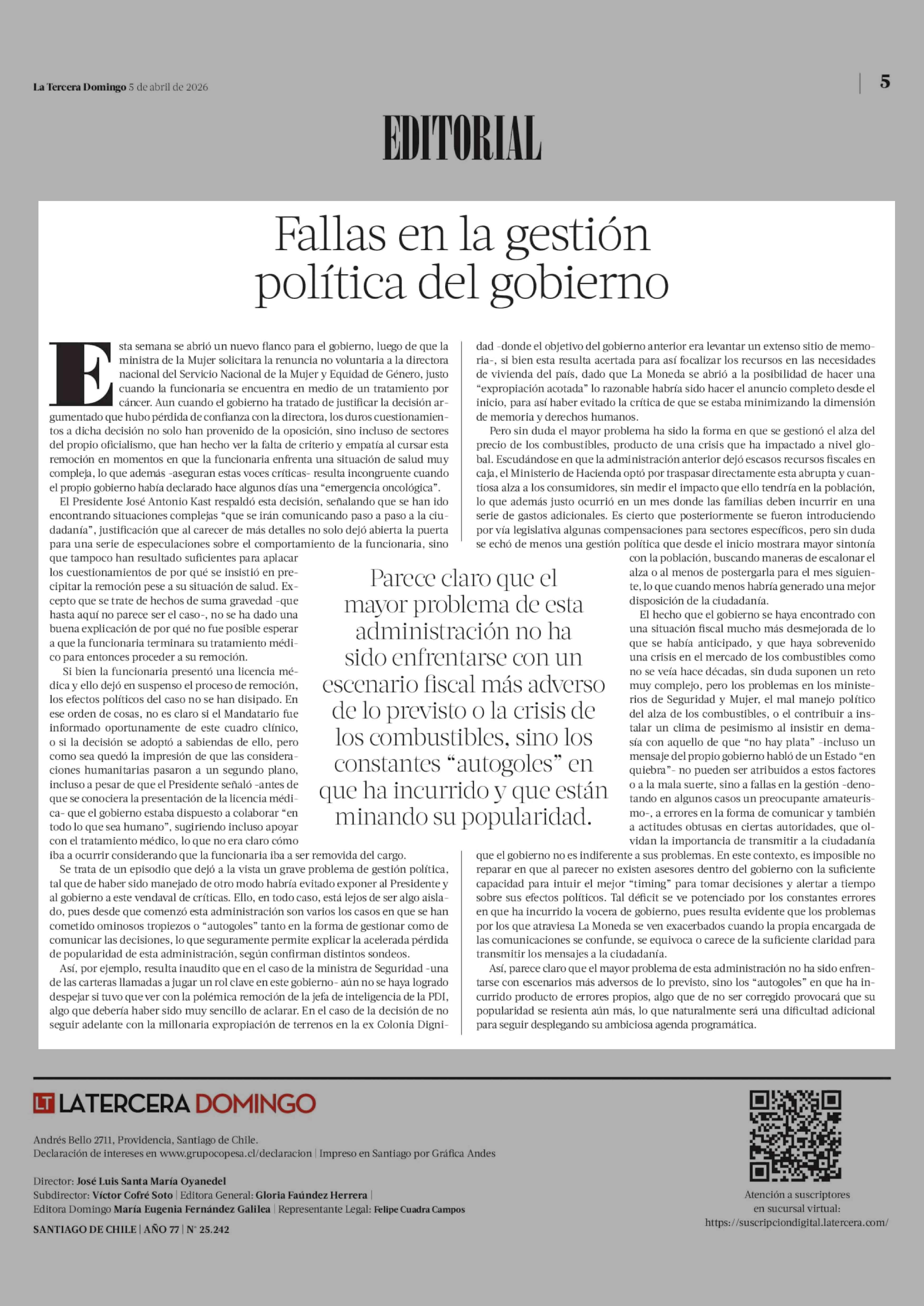 Fecha: 05-04-2026 Sector: Editorial Región: Región Metropolitana de Santiago