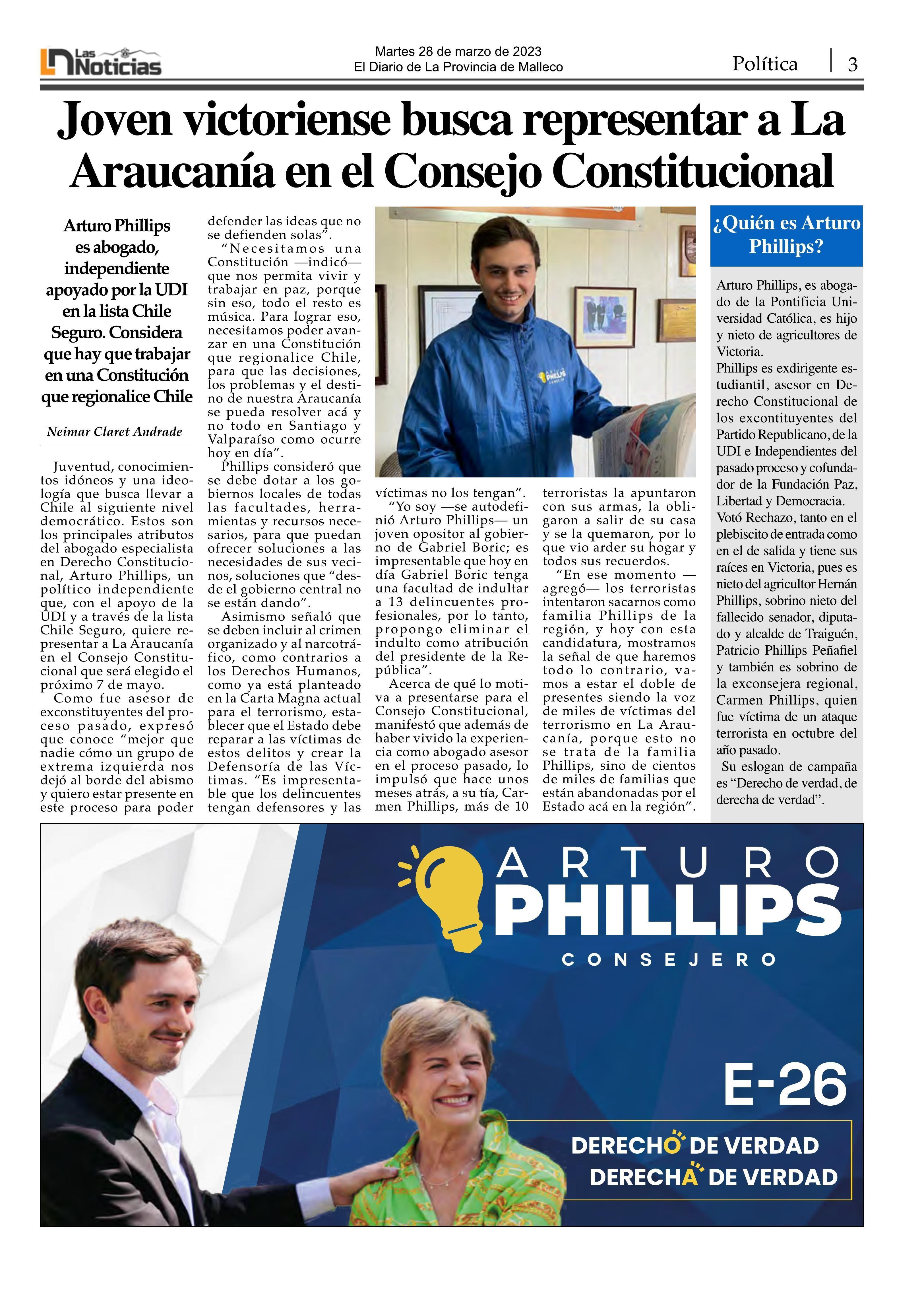 Joven victoriense busca representar a La Araucanía en el Consejo Constitucional 28-03-2023 Las Noticias |