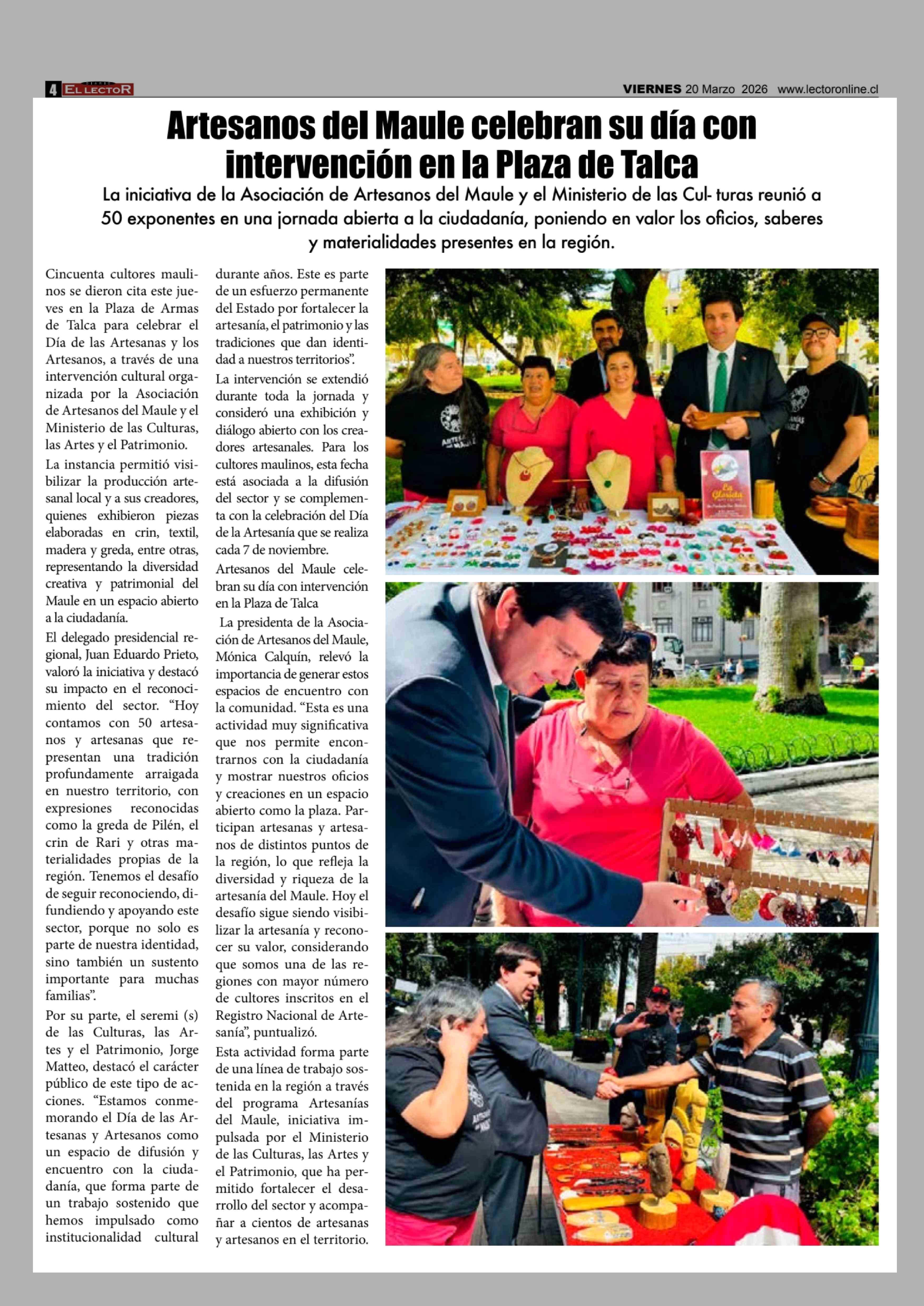 Artesanos del Maule celebran su día con intervención en la Plaza de Talca 20-03-2026 El Lector |
