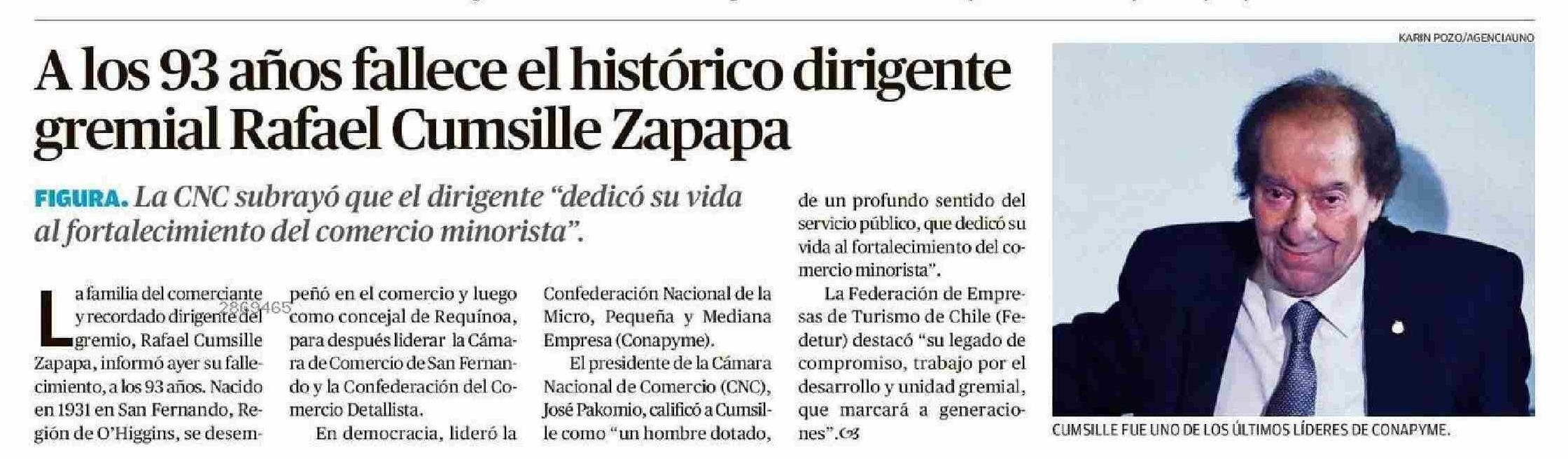 | Título: | A los 93 años fallece el histórico dirigente gremial Rafael Cumsille Zapapa |