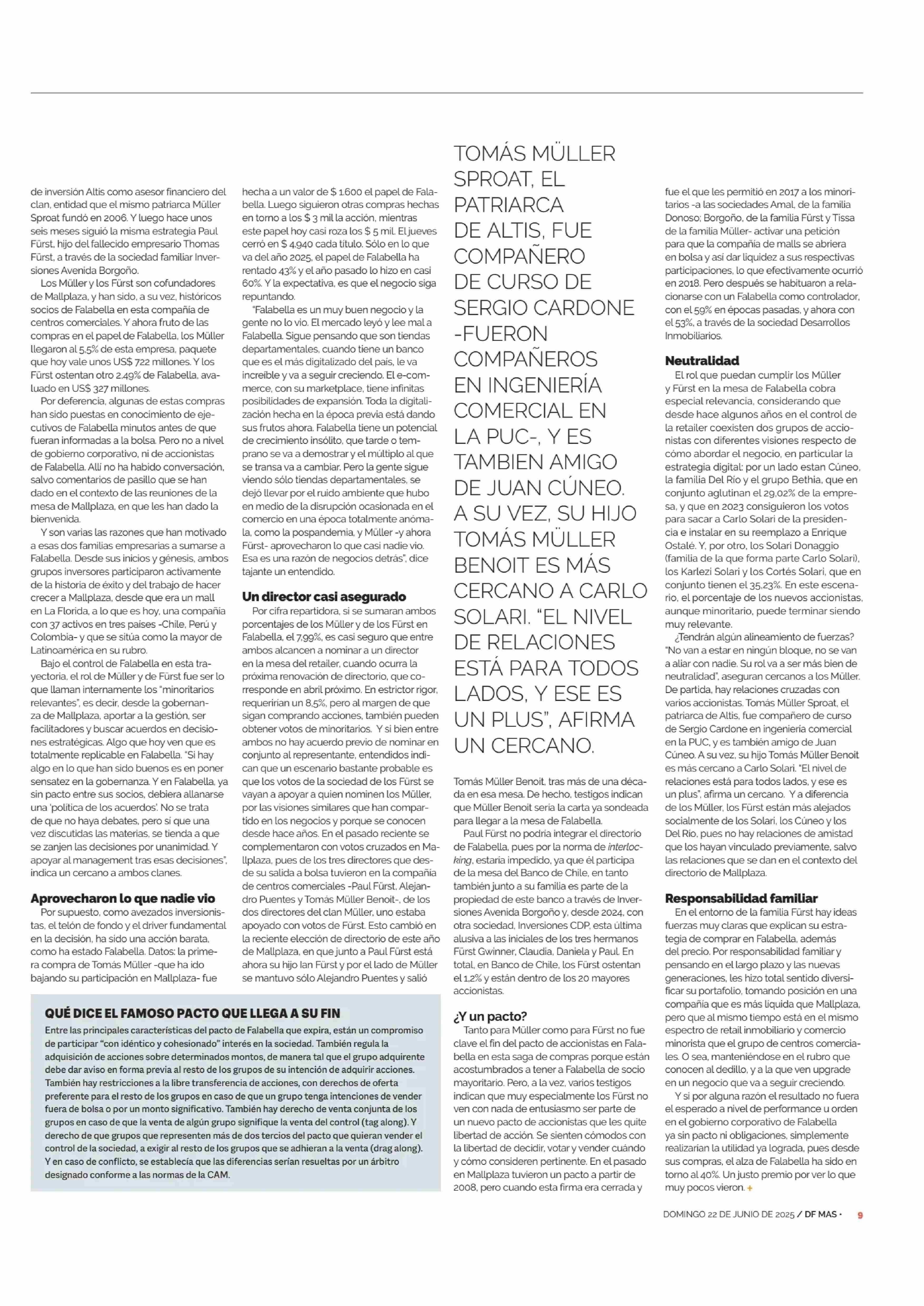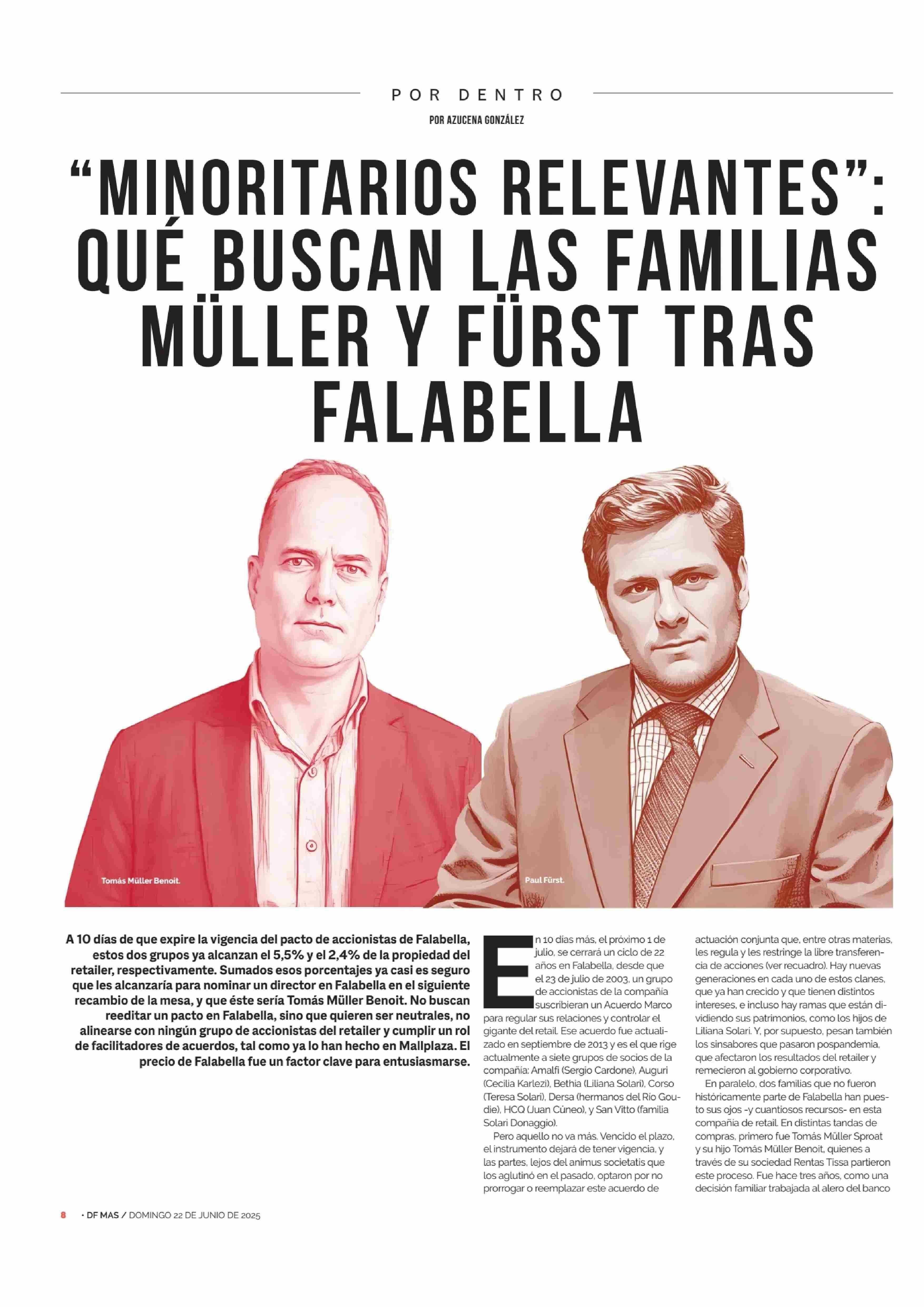 “MINORITARIOS RELEVANTES”: QUE BUSCAN LAS FAMILIAS MULLER Y FURST TRAS FALABELLA 22-06-2025 Diario Financiero |