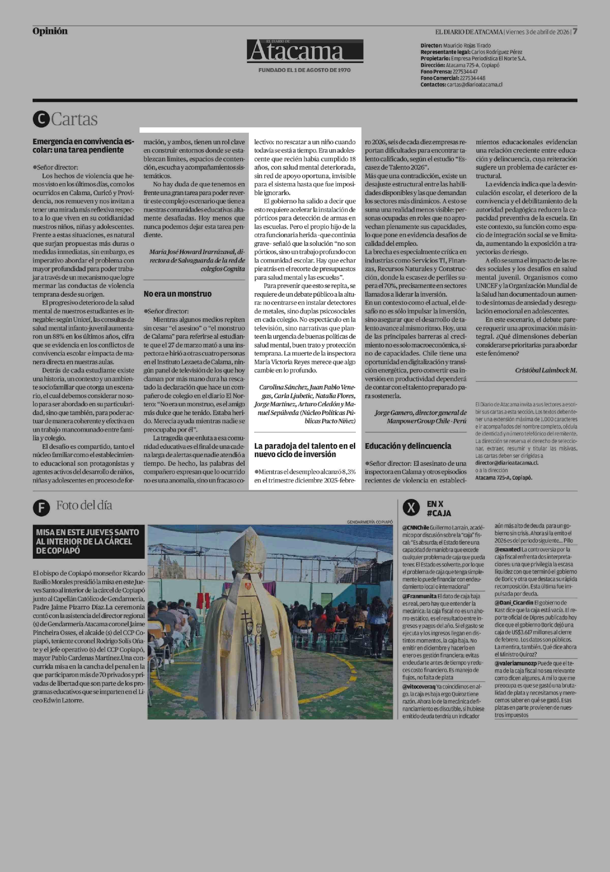 CARTAS: No era un monstruo 03-04-2026 El Diario de Atacama |