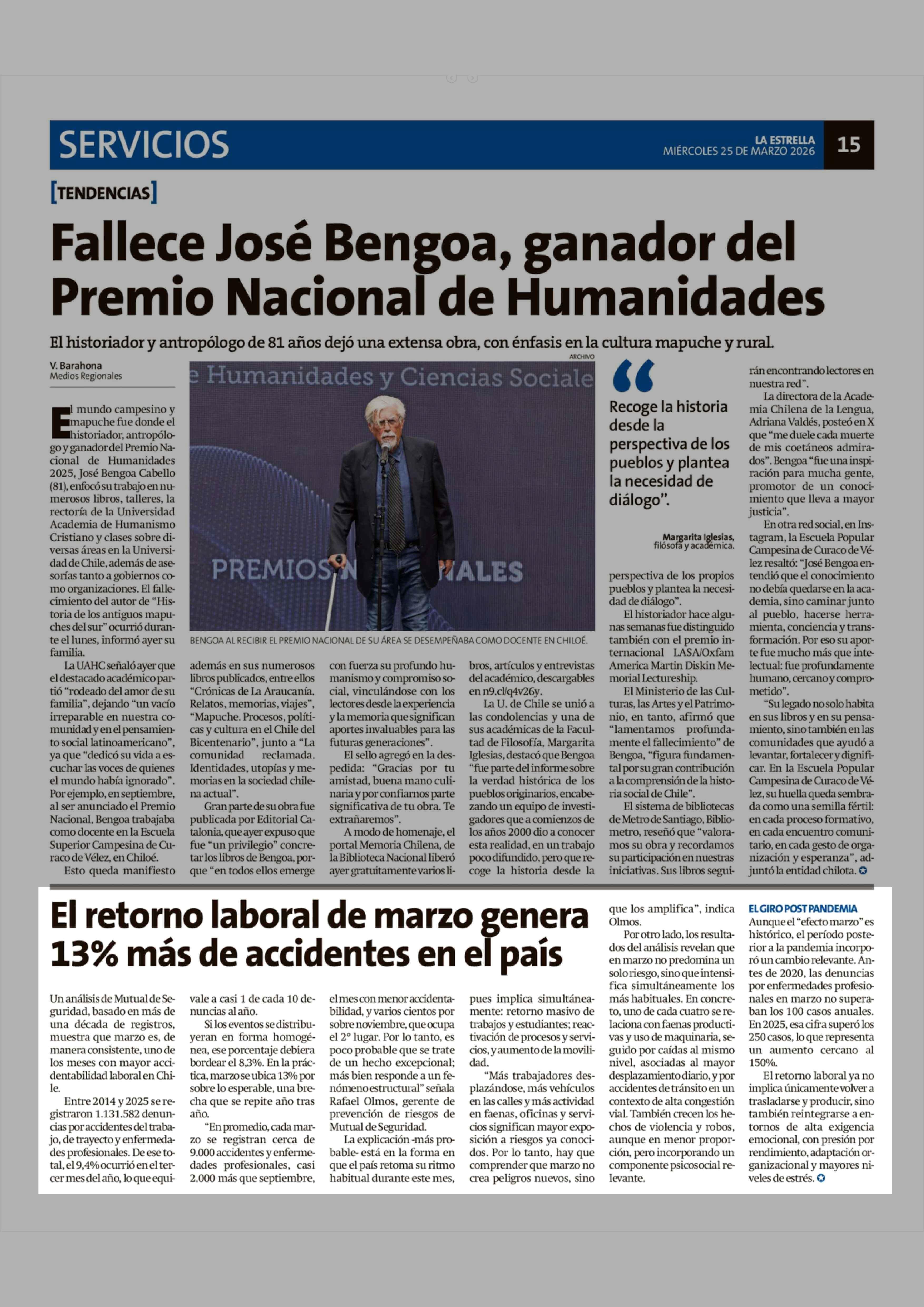 El retorno laboral de marzo genera 13% más de accidentes en el país 25-03-2026 La Estrella de Chiloé |