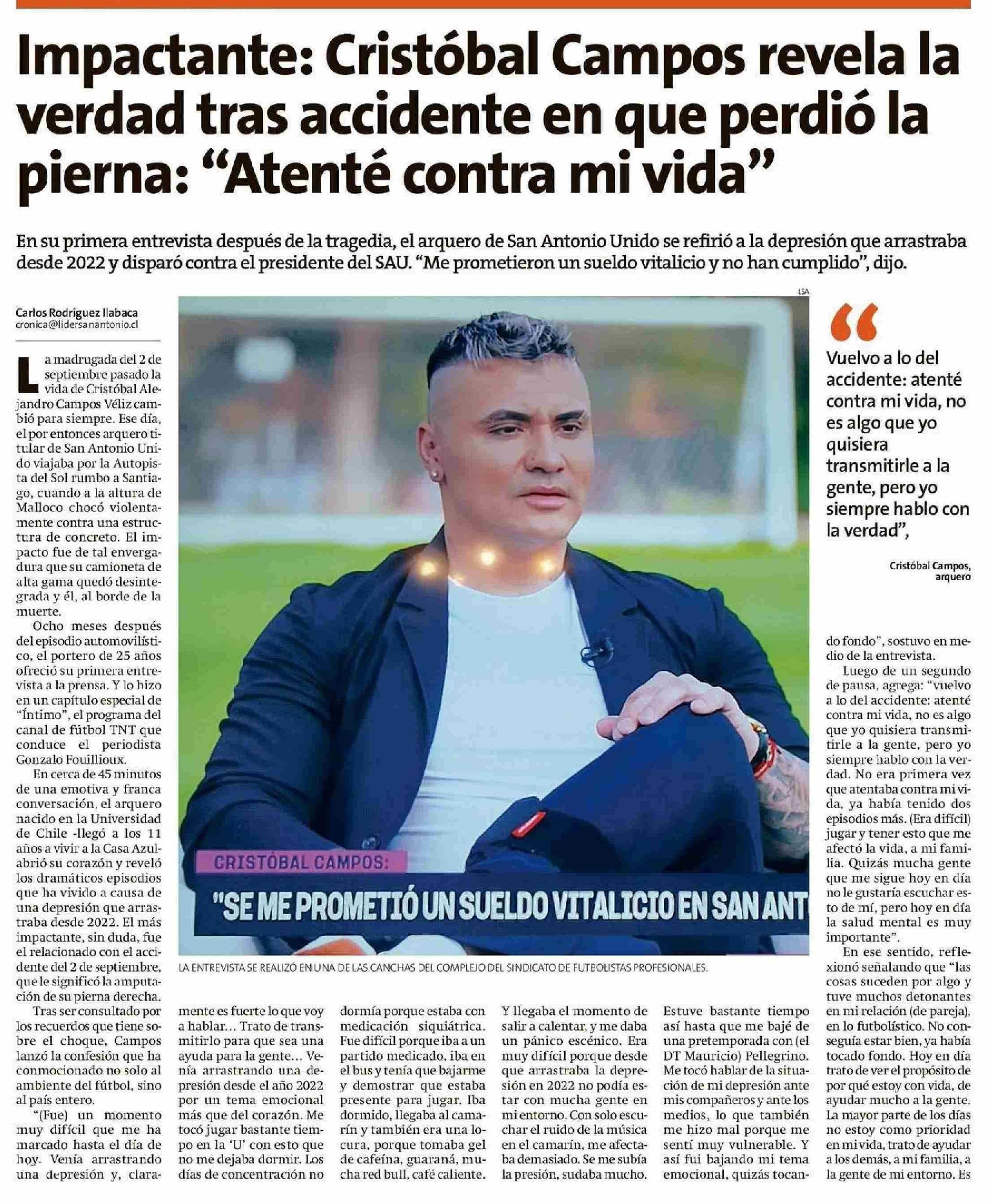 Título: Impactante: Cristóbal Campos revela la verdad tras accidente en que perdió la pierna: “Atenté contra mi vida”