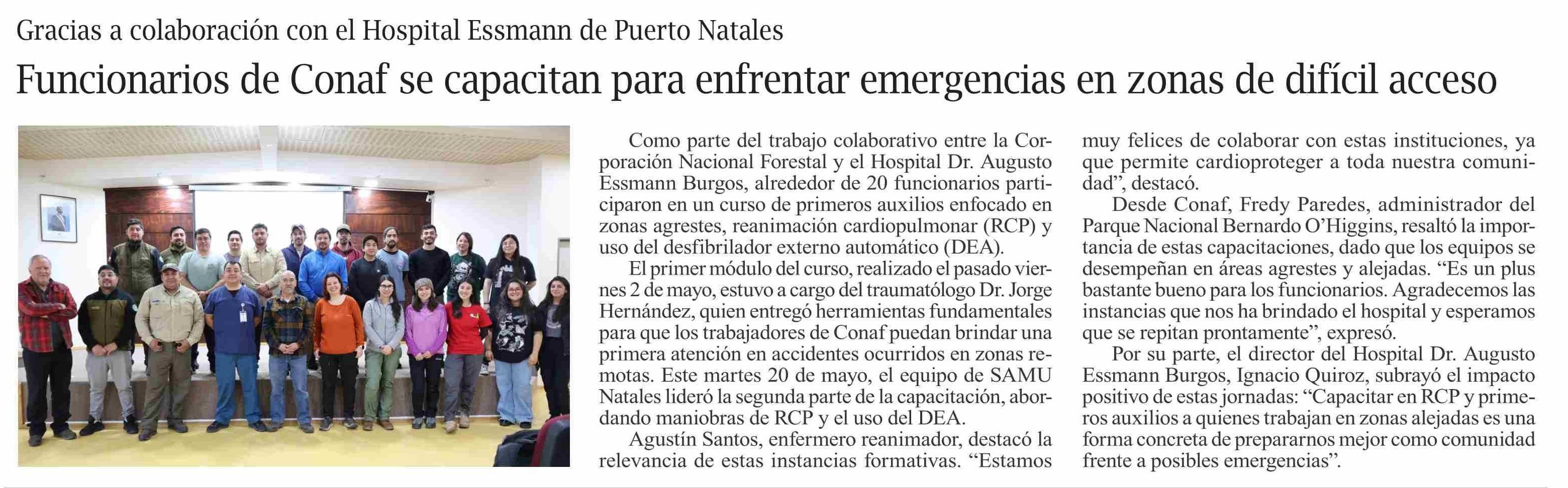 Funcionarios de Conaf se capacitan para enfrentar emergencias en zonas de difícil acceso 22-05-2025 El Pingüino |