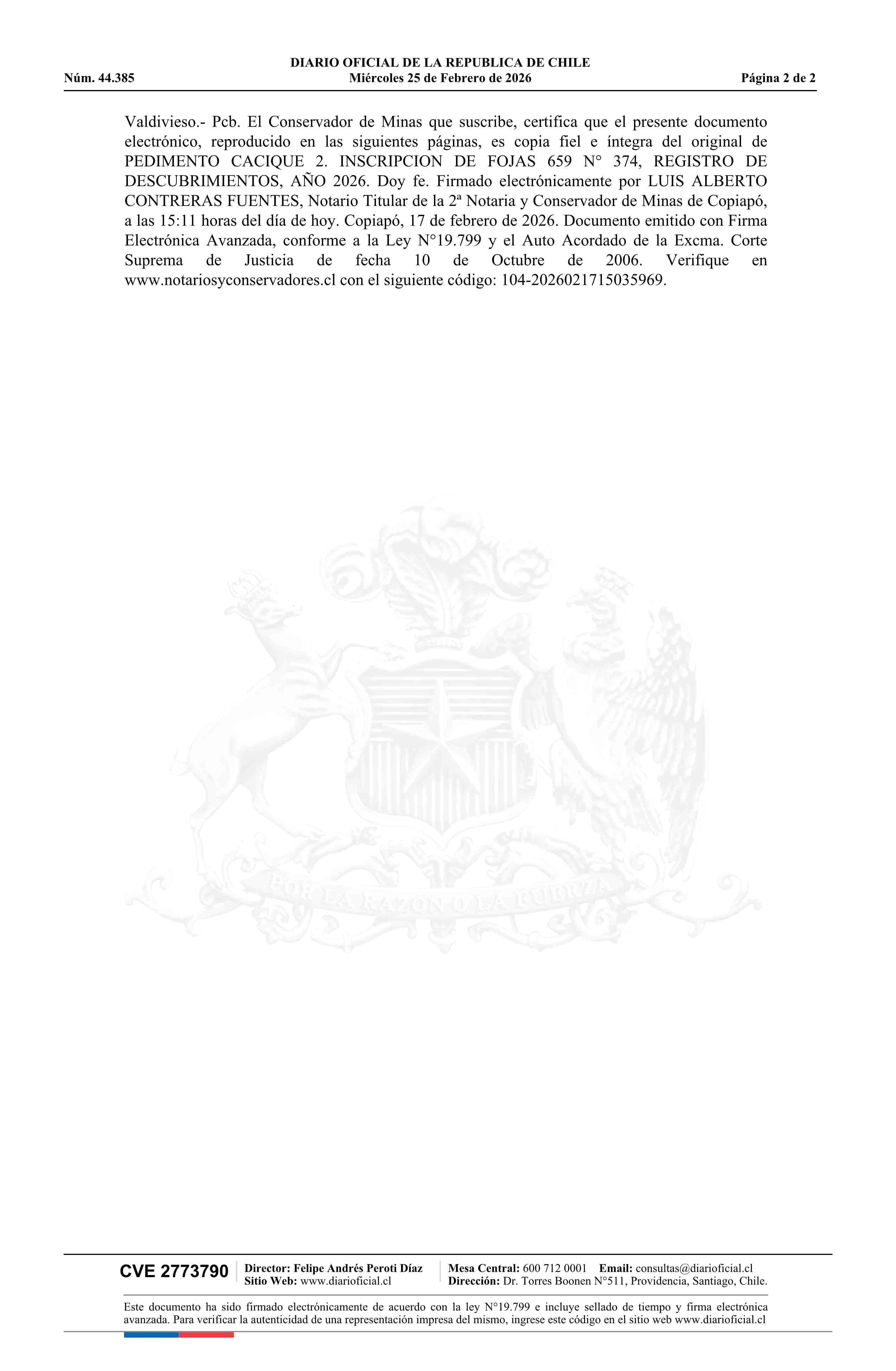 25-02-2026 DIARIO OFICIAL CHILE - BOLETÍN OFICIAL DE MINERÍA
