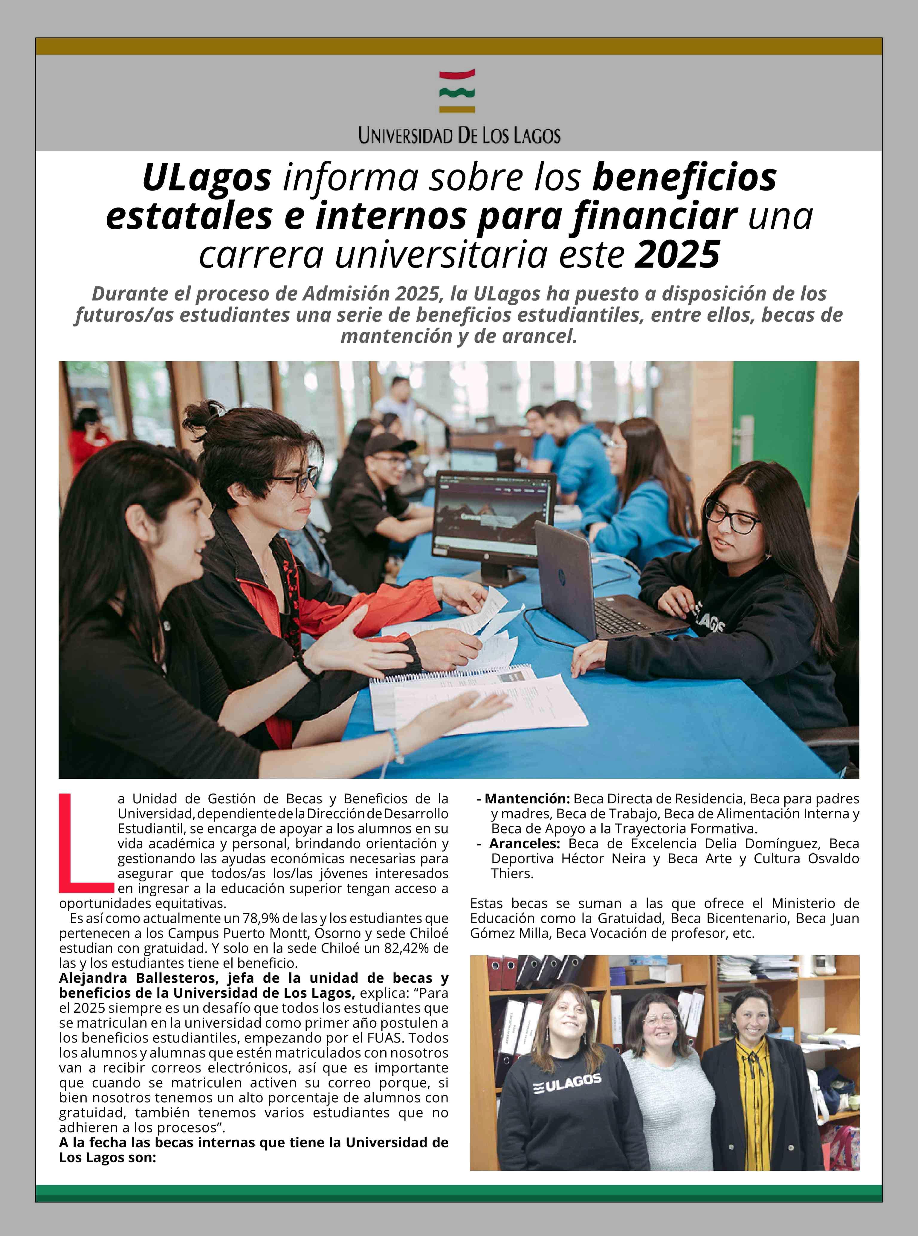 | Título: | ULagos informa sobre los beneficios estatales e internos para financiar una carrera universitaria este 2025 |