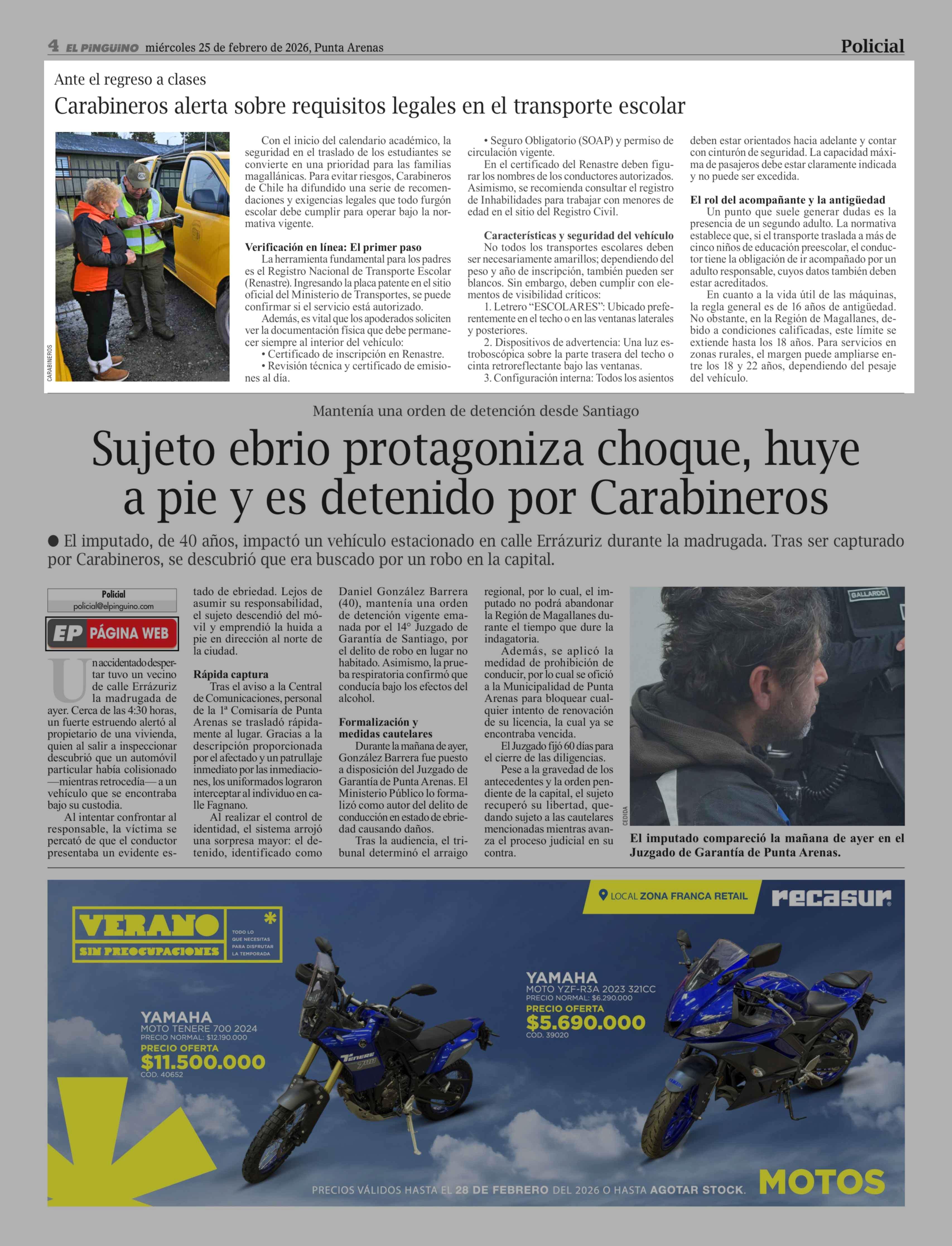 Carabineros alerta sobre requisitos legales en el transporte escolar 25-02-2026 El Pingüino |