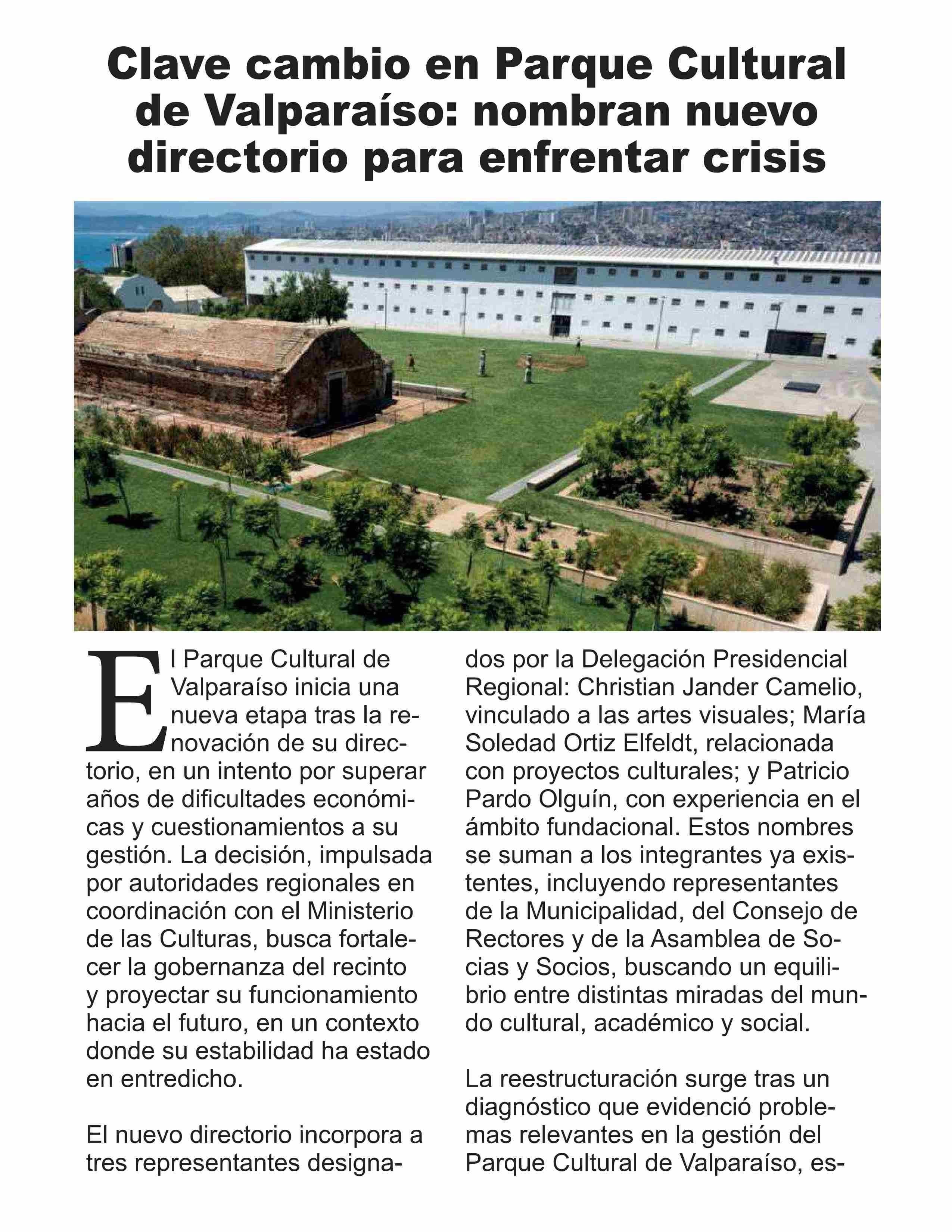 Título: Clave cambio en Parque Cultural de Valparaíso: nombran nuevo directorio para enfrentar crisis